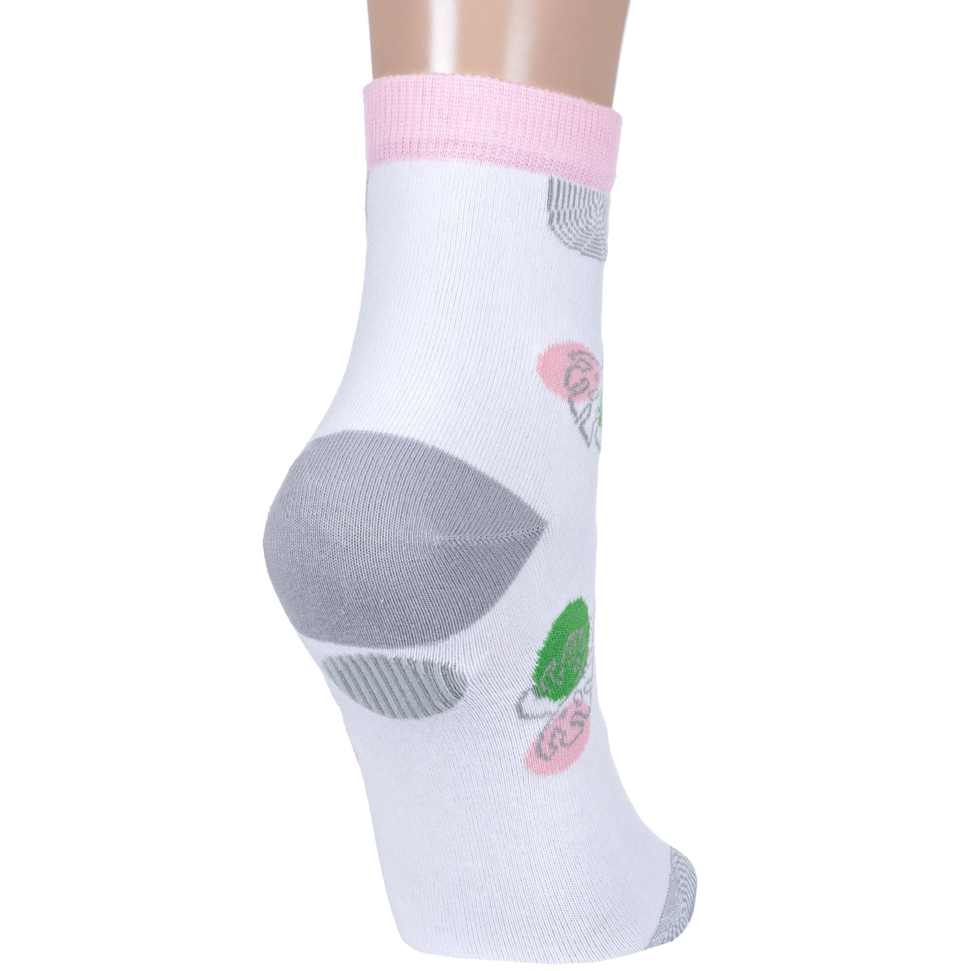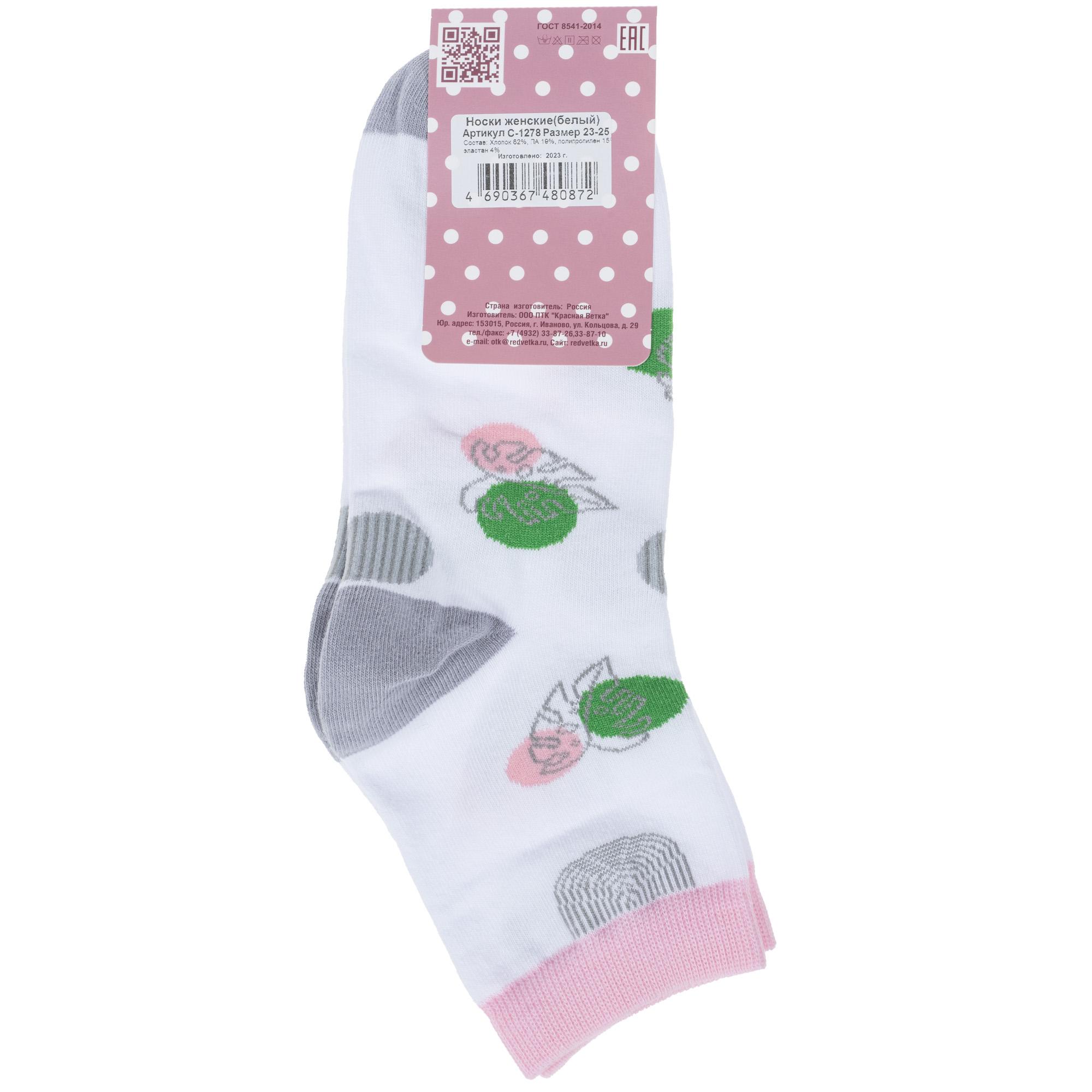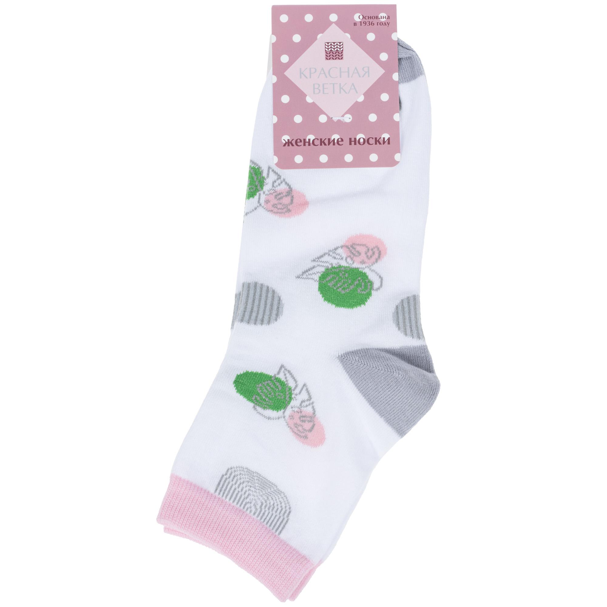 Комплект женских носков из 2 пар, круглогодичные, укороченные, цвет белый, повседневные, возможно бесшовные, принт (рисунок): цветы / растения, контрастные пятка / мысок / резинка, абстрактный, с узором, состав: 62% хлопок, 19% полиамид, 15% полипропилен, 4% эластан, арт. 2-С-1278. Производитель «КРАСНАЯ ВЕТКА» Россия под брендом «Красная ветка».