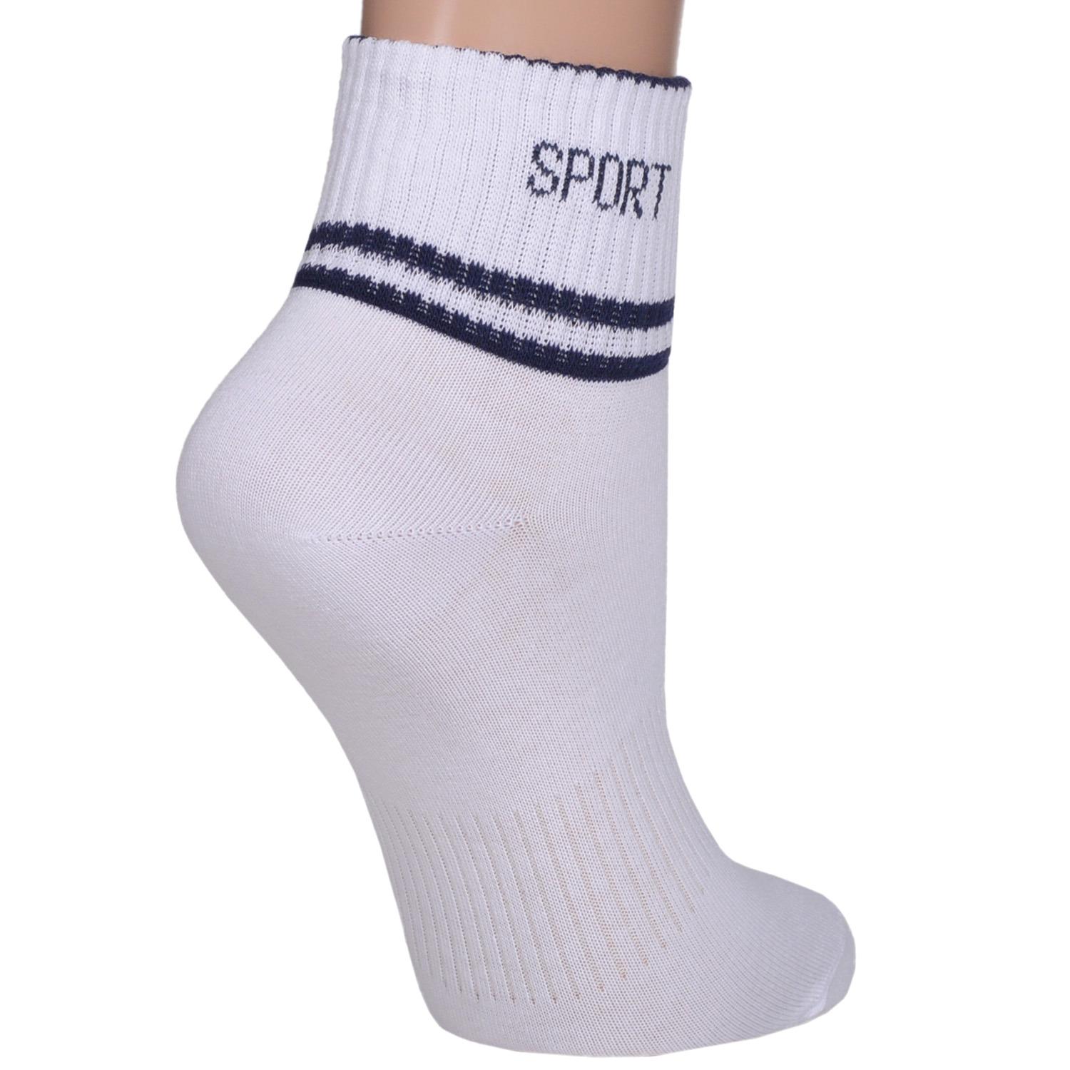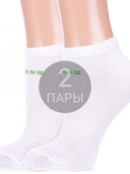 Комплект женских носков из 2 пар, круглогодичные, укороченные, цвет белый, спортивные, шов обычный (не бесшовные), принт (рисунок): спортивные, с узором, состав: 85% хлопок, 10% полиамид, 5% эластан (лайкра), арт. 2-С25. Производитель «ИП Мурзаков В.А., Ставропольский край, Россия» под брендом «Lorenzline».