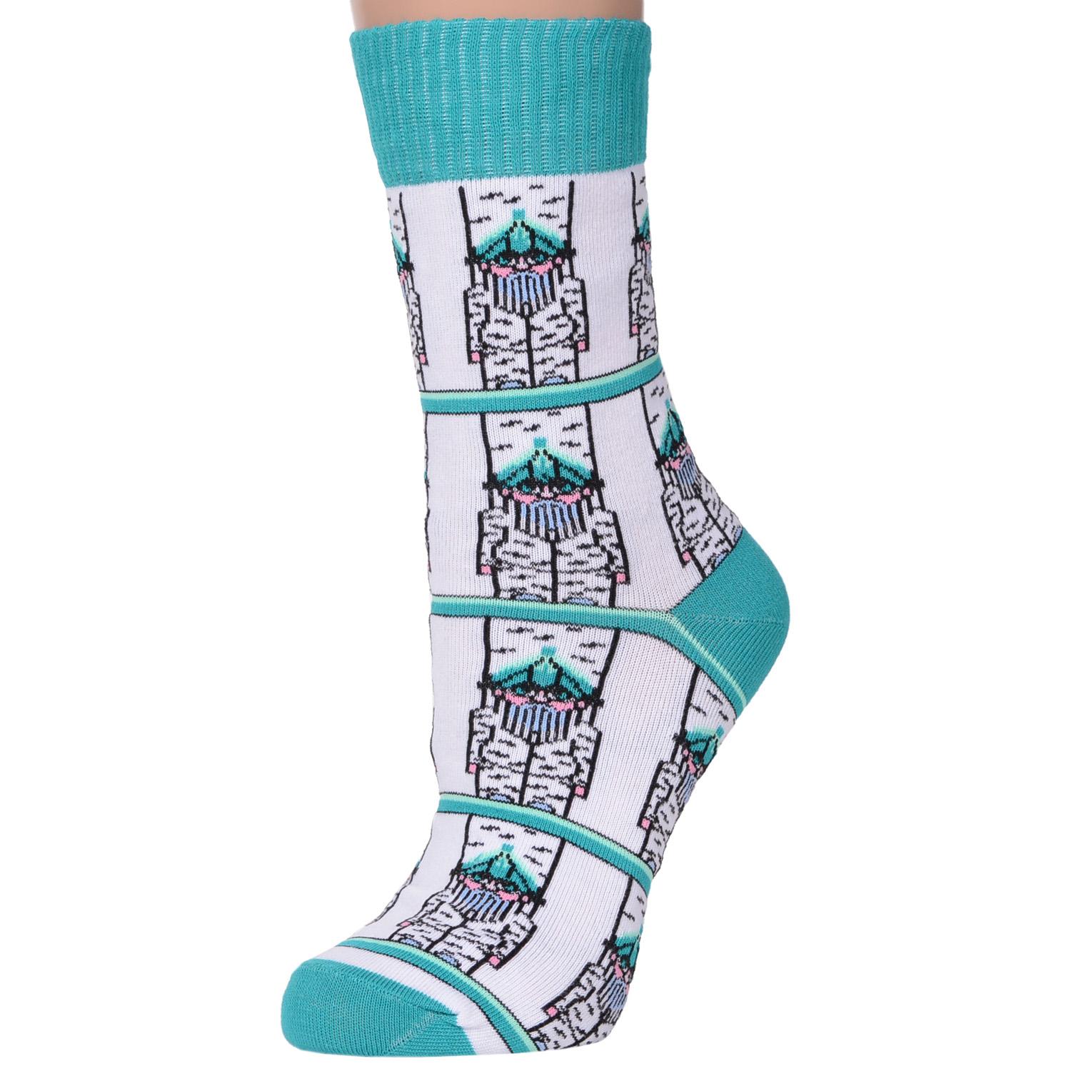 Комплект женских носков из 2 пар, круглогодичные, средней длины, цвет бело-бирюзовый, повседневные, шов обычный (не бесшовные), принт (рисунок): люди, крупные контрастные рисунки, состав: 82% хлопок, 15% полиамид, 3% эластан, арт. 2-WNM-99. Производитель «ИП Рыбалкин В.С., Московская область, г. Щелково» под брендом «Msclub».