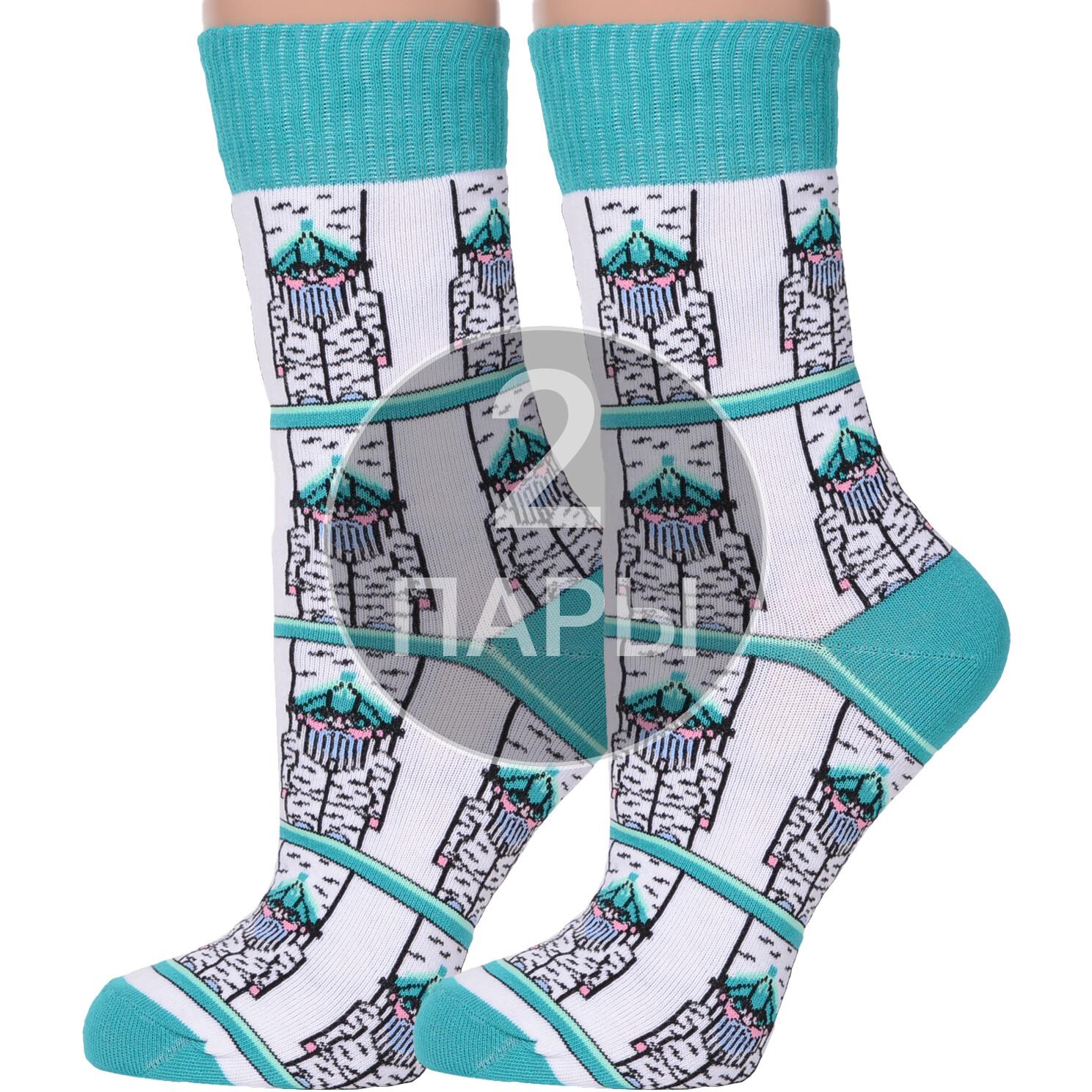 Комплект из 2 пар женских носков MSCLUB №Ж08 2-WNM-99, БЕЛО-БИРЮЗОВЫЕ
