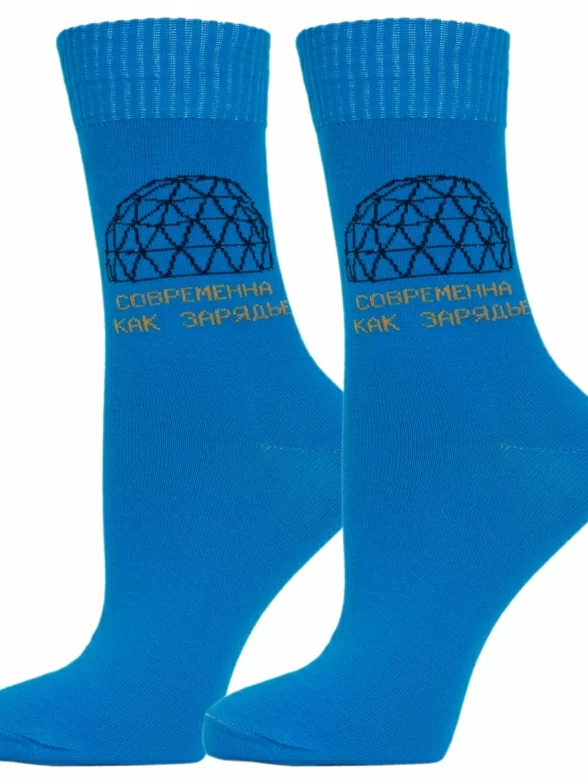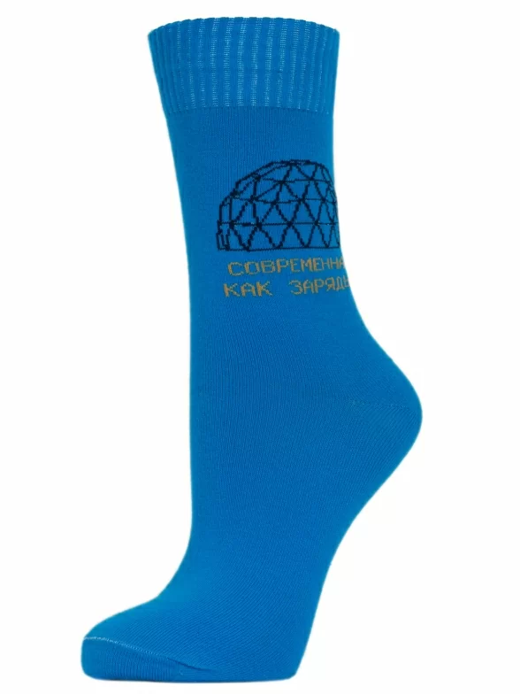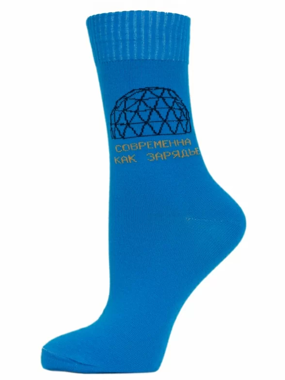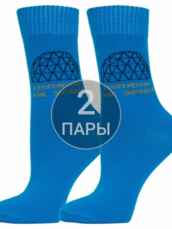 Комплект женских носков из 2 пар, круглогодичные, средней длины, цвет голубой, повседневные, шов обычный (не бесшовные), принт (рисунок): путешествия, надписи, состав: 82% хлопок, 15% полиамид, 3% эластан, арт. 2-WNM-42Э. Производитель «ИП Рыбалкин В.С., Московская область, г. Щелково» под брендом «Msclub».