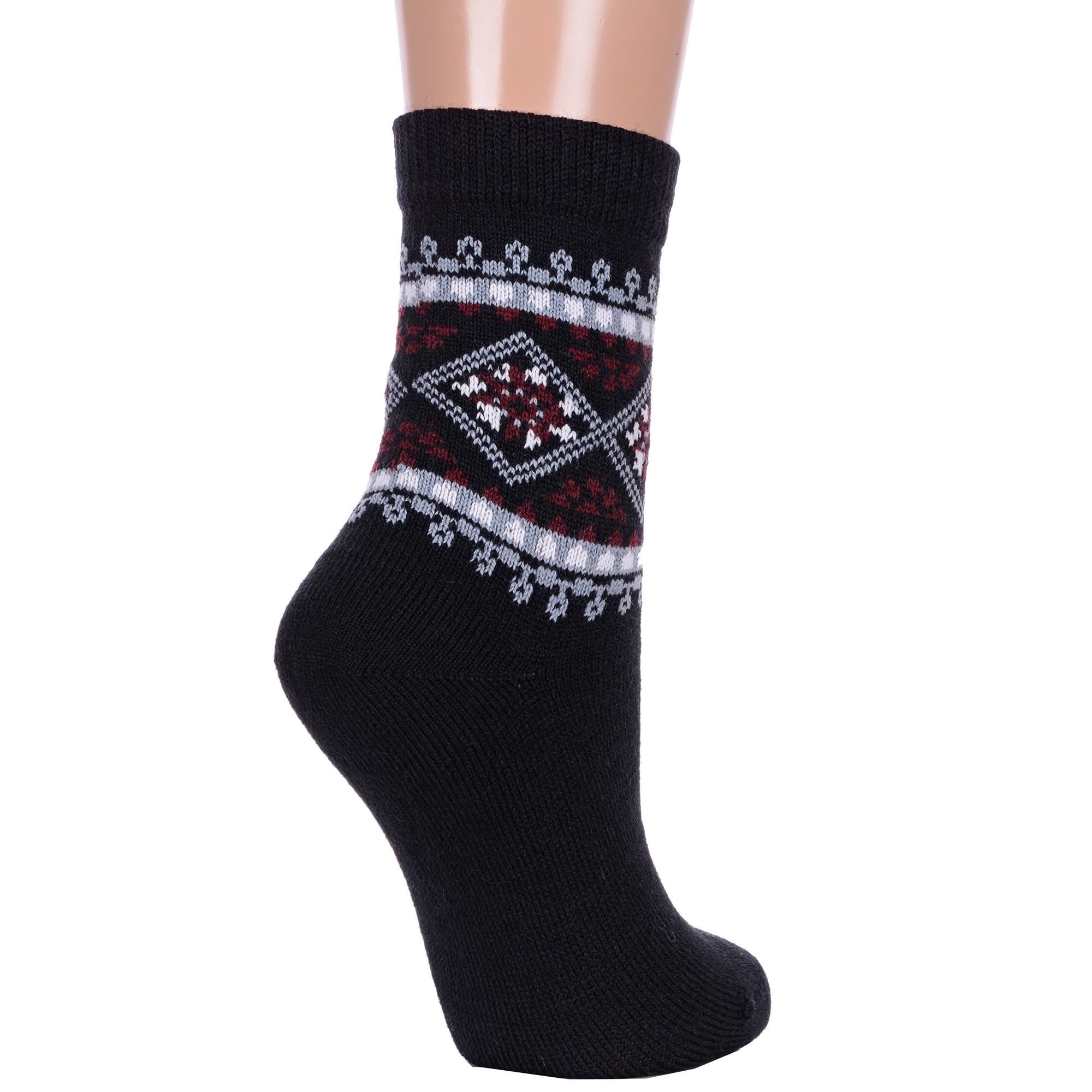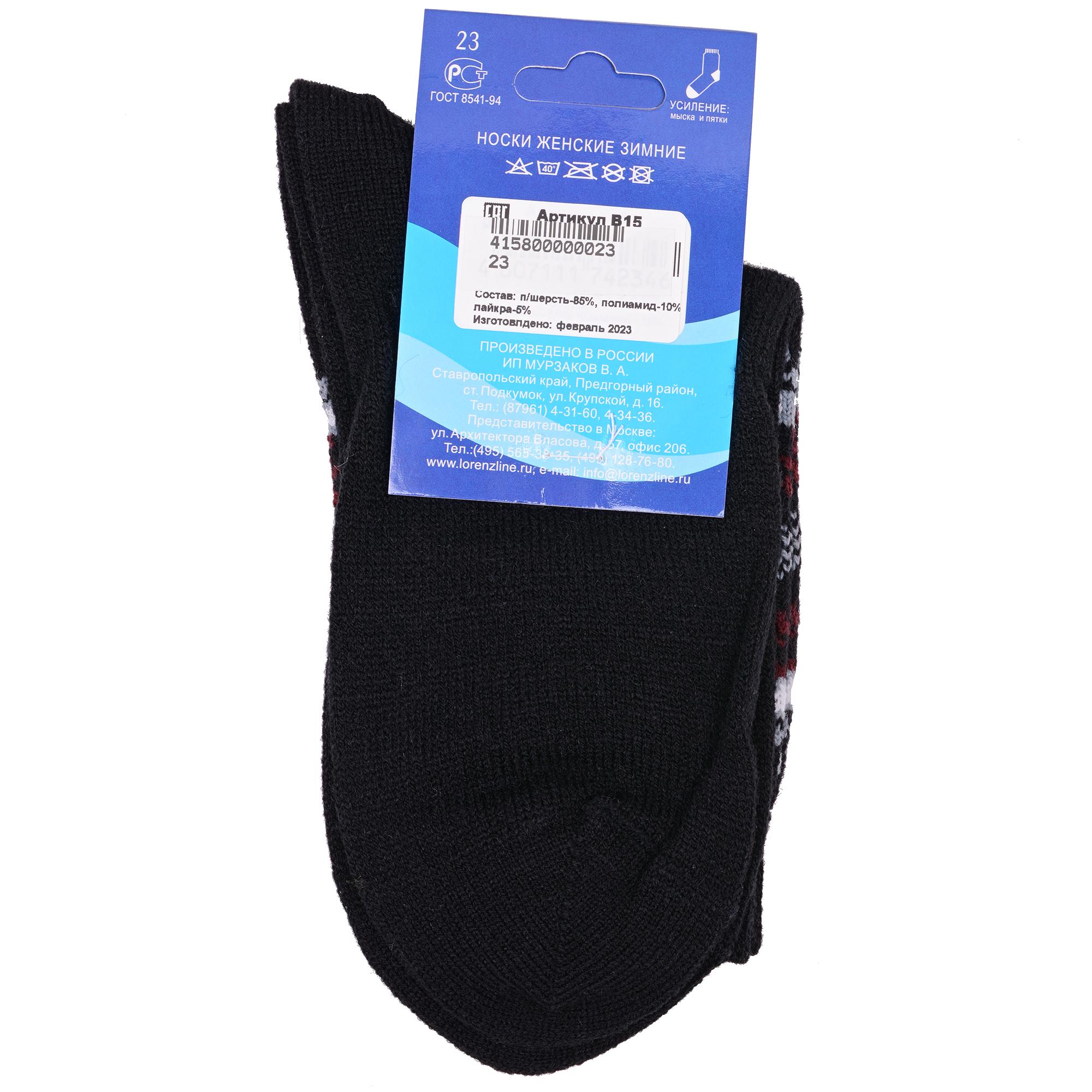 Комплект женских носков из 2 пар, зимние, укороченные, цвет черный, теплые, повседневные, возможно бесшовные, принт (рисунок): норвежский жаккард, с узором, состав: 85% полушерсть, 10% полиамид, 5% эластан (лайкра), арт. 2-В15. Производитель «ИП Мурзаков В.А., Ставропольский край, Россия» под брендом «Lorenzline».
