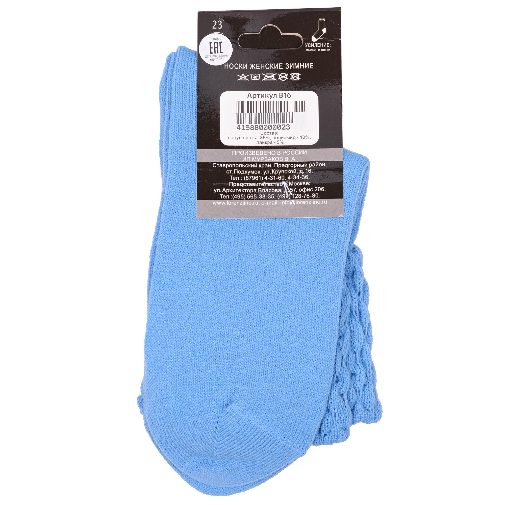 Комплект женских носков из 2 пар, зимние, укороченные, цвет голубой, теплые, необычные, возможно бесшовные, принт (рисунок): с узором, однотонный, состав: 85% полушерсть, 10% полиамид, 5% эластан (лайкра), арт. 2-В16. Производитель «ИП Мурзаков В.А., Ставропольский край, Россия» под брендом «Lorenzline».