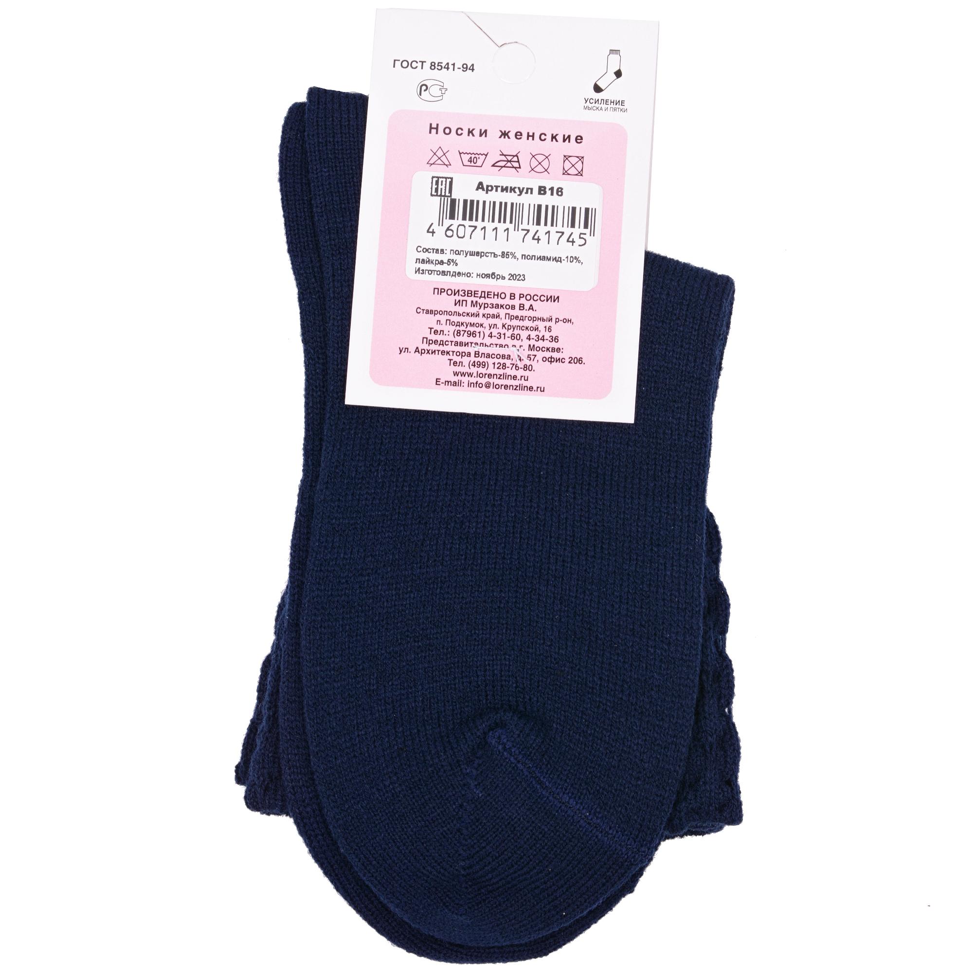 Комплект женских носков из 2 пар, зимние, укороченные, цвет синие, теплые, необычные, возможно бесшовные, принт (рисунок): с узором, однотонный, состав: 85% полушерсть, 10% полиамид, 5% эластан (лайкра), арт. 2-В16. Производитель «ИП Мурзаков В.А., Ставропольский край, Россия» под брендом «Lorenzline».