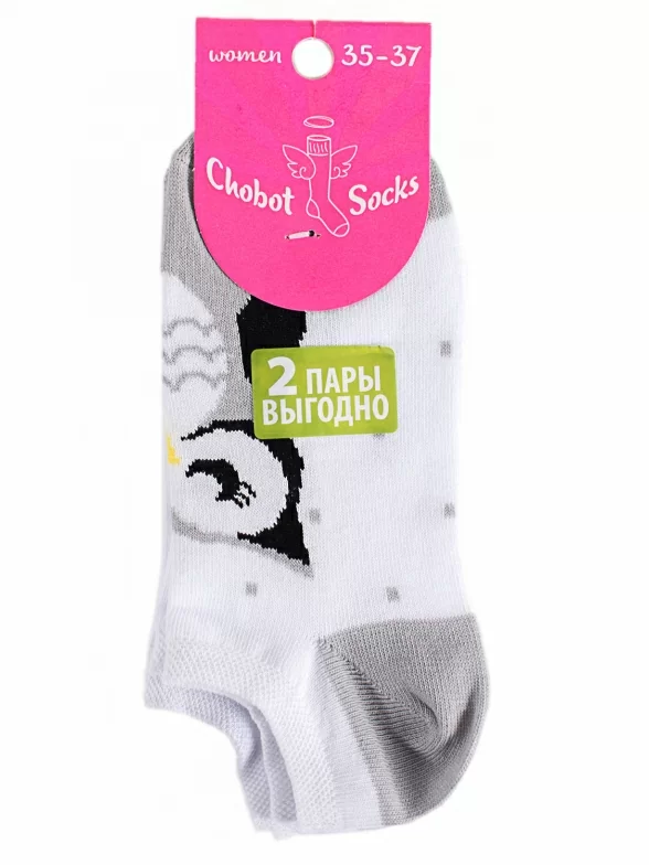 Комплект из 2 пар женских ультракоротких носков Чобот, 52-82, БЕЛЫЕ / СОВА