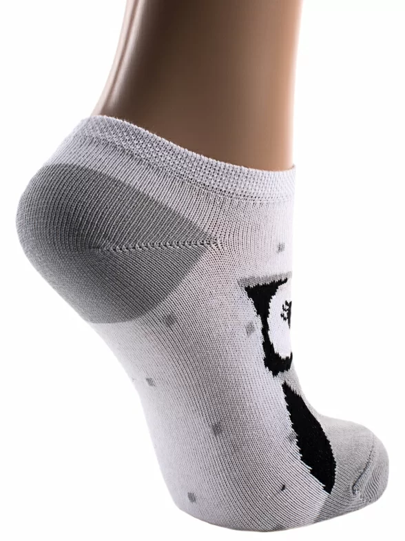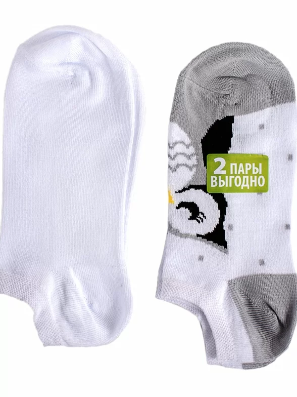В этом комплекте сразу две пары качественных женских носков ультракороткого фасона. Они сделаны из приятного трикотажа в котором 80 процентов хлопка и отличаются удобной мягкой резинкой. Одна пара – однотонная белая – прекрасный выбор под светлые кеды. Другая оформлена очаровательным принтом с совой.
