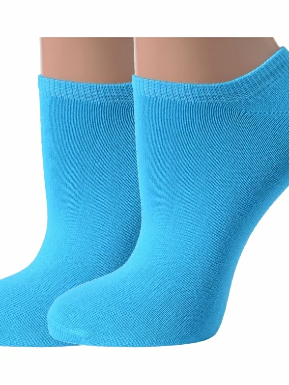 Комплект женских носков из 2 пар, летние, ультракороткие, цвет бирюзовый, классические, возможно бесшовные, принт (рисунок): однотонный, без рисунков/узоров, состав: 80% хлопок, 15% полиамид, 5% эластан или 88% хлопок, 10% полиамид, 2% эластан, арт. 2-G-3R7. Производитель «ХОХ» Россия под брендом «Хох».