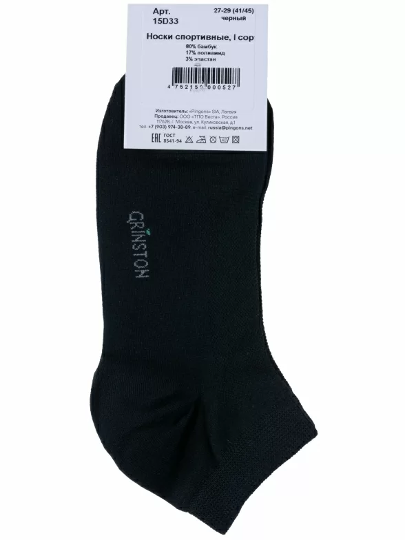 Комплект из 3 пар бамбуковых носков Grinston socks (PINGONS), 3-15D33, ЧЕРНЫЕ