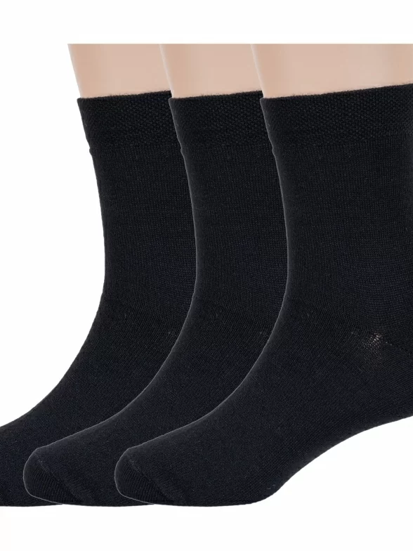 Комплект детских носков из 3 пар, круглогодичные, средней длины, цвет черный, классические, шов обычный (не бесшовные), принт (рисунок): однотонный, без рисунков/узоров, состав: 88% бамбук, 10% полиамид, 2% эластан, арт. 3-D-1425. Производитель «ХОХ» Россия под брендом «Хох».