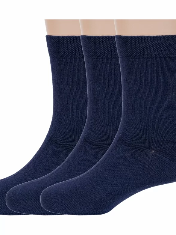 Комплект детских носков из 3 пар, круглогодичные, средней длины, цвет темно-синие, классические, шов обычный (не бесшовные), принт (рисунок): однотонный, без рисунков/узоров, состав: 88% бамбук, 10% полиамид, 2% эластан, арт. 3-D-1425. Производитель «ХОХ» Россия под брендом «Хох».