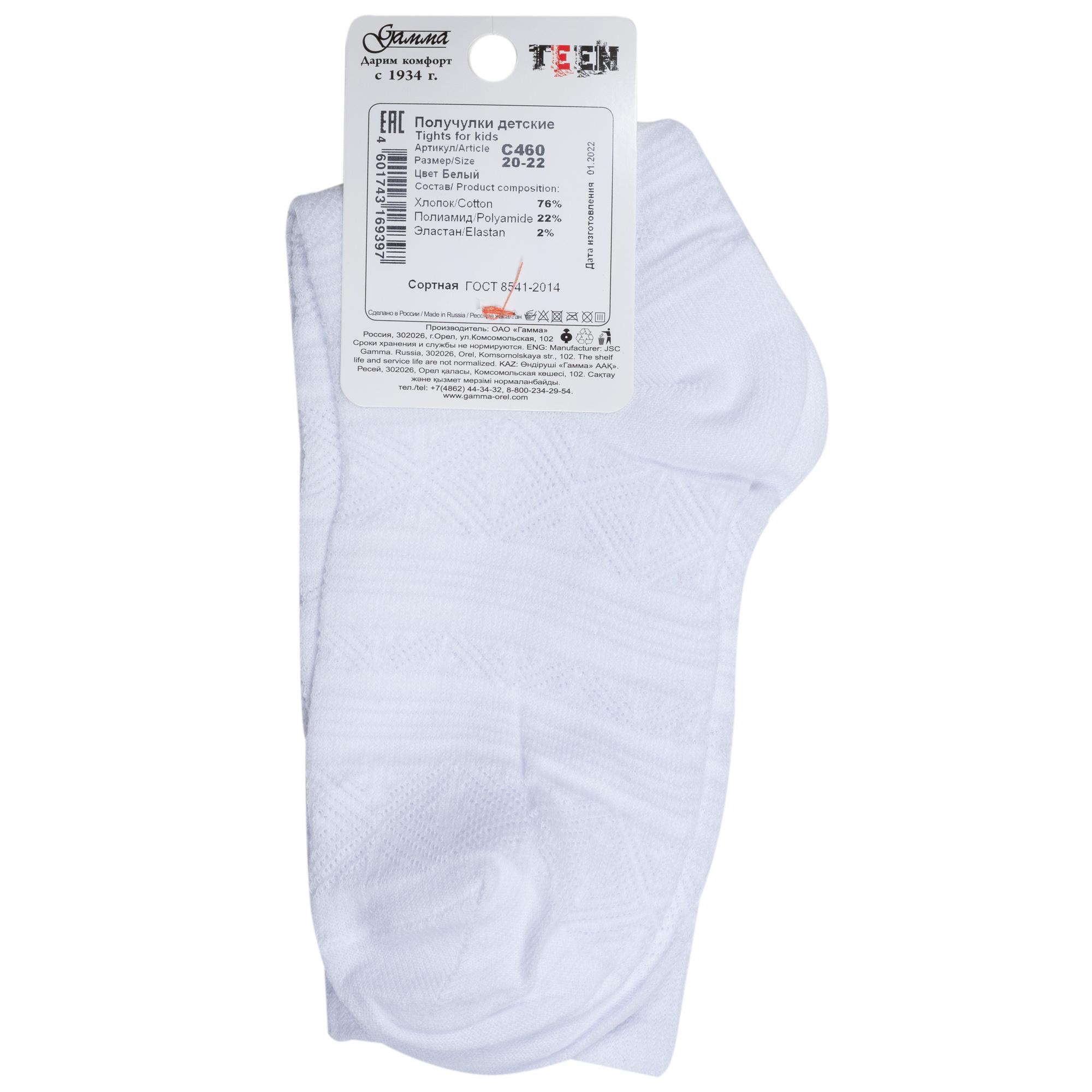 В комплект входят 3 пары белых гольфов артикула С460 с индивидуальными фабричными этикетками.