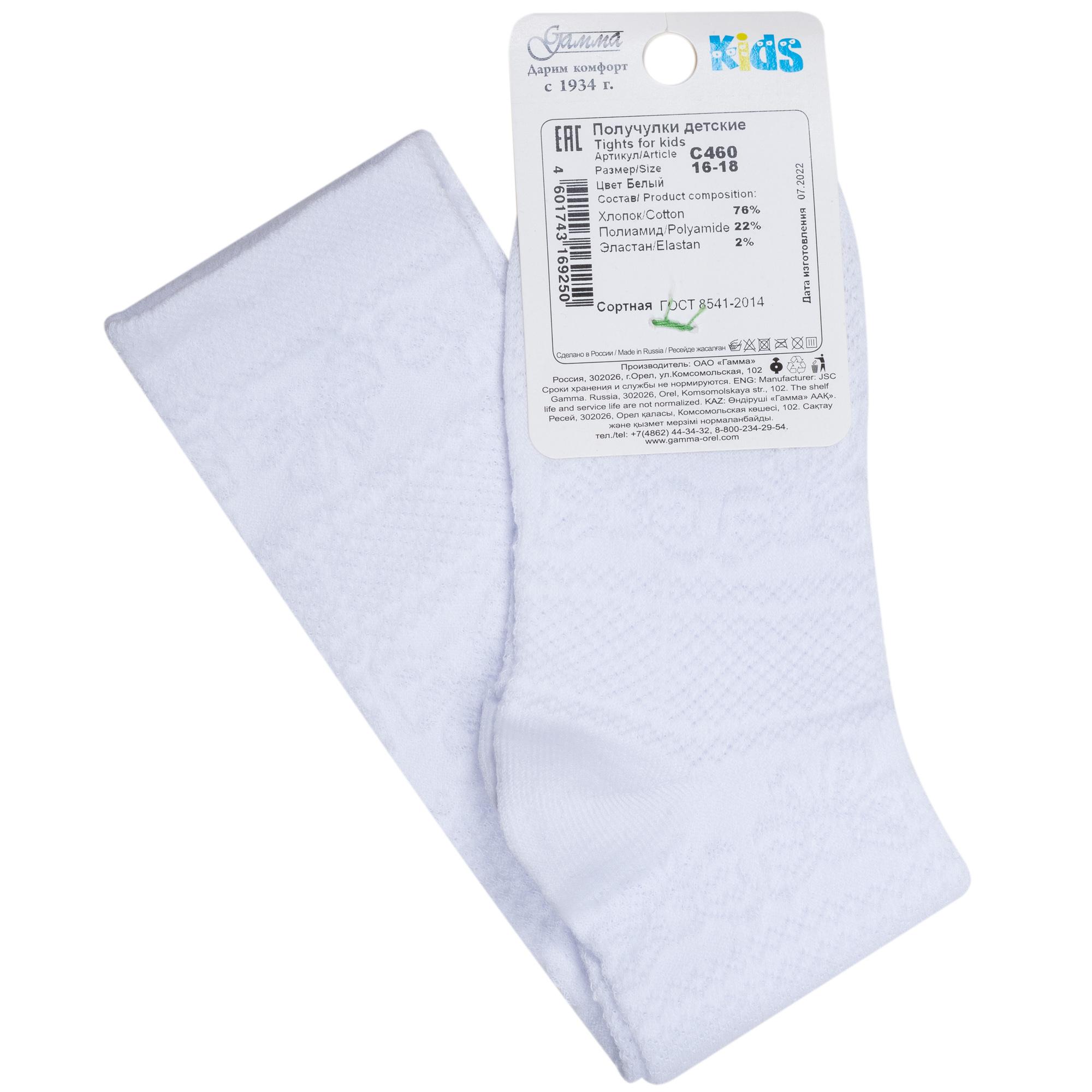 В комплект входят 3 пары белых гольфов артикула С460 с индивидуальными фабричными этикетками.