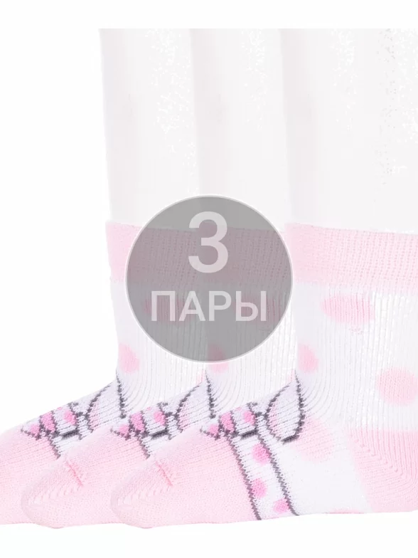 Комплект детских носков из 3 пар, межсезонные или зимние, укороченные, цвет рис. 165, бледно-розовый, теплые, состав: 83% хлопок, 16% полиамид, 1% эластан, фабричный артикул 3-14С3060. Производитель «Брестский чулочный комбинат ОАО, Беларусь» под брендом «Брестские (бчк)».