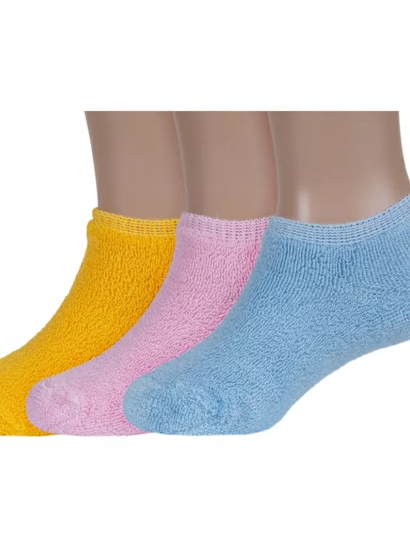 В комплект входят 3 пары носков артикула DZ-3R18 с индивидуальными фабричными этикетками: по 1 паре темно-желтых, розовых и светло-голубых.