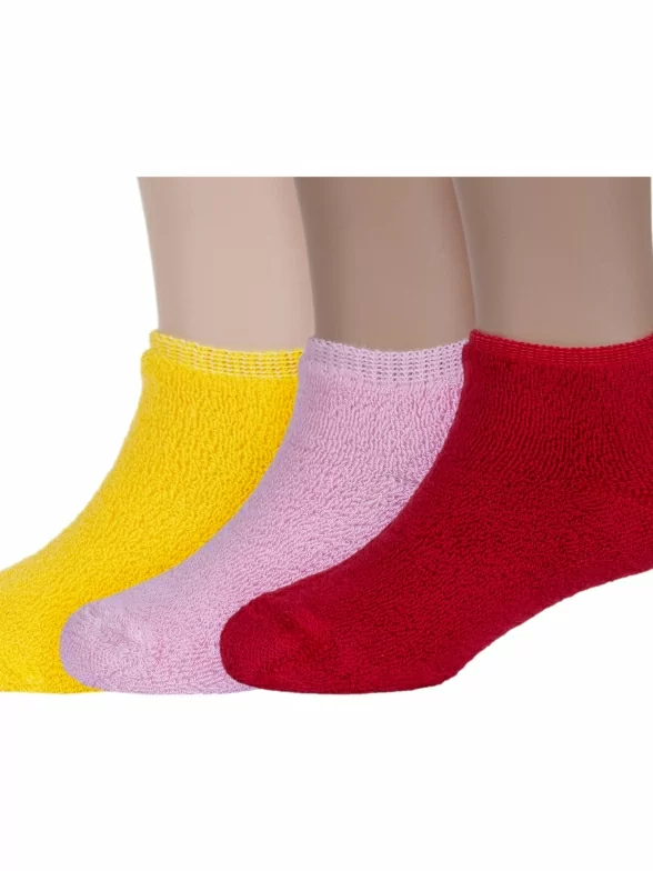 В комплект входят 3 пары носков артикула DZ-3R18 с индивидуальными фабричными этикетками: по 1 паре розовых, красных и желтых.