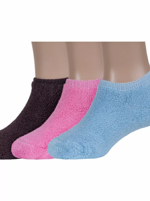 В комплект входят 3 пары носков артикула DZ-3R18 с индивидуальными фабричными этикетками: по 1 паре светло-голубых, темно-розовых и коричневых.
