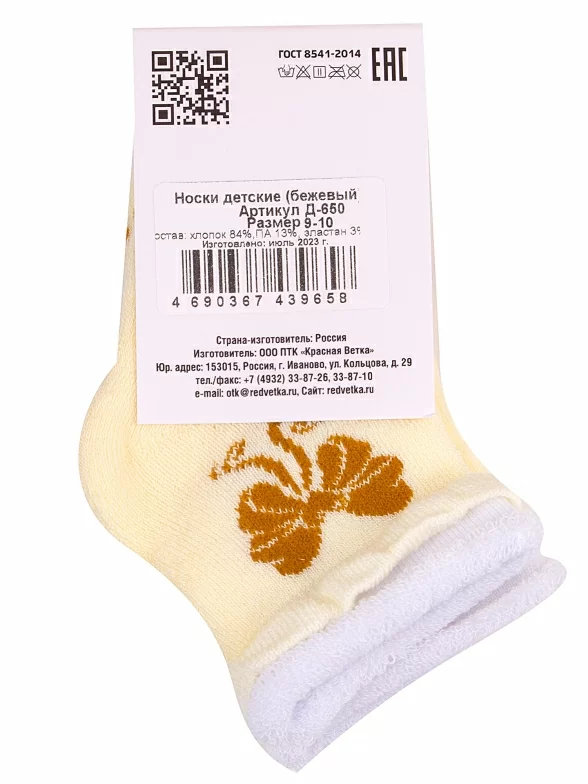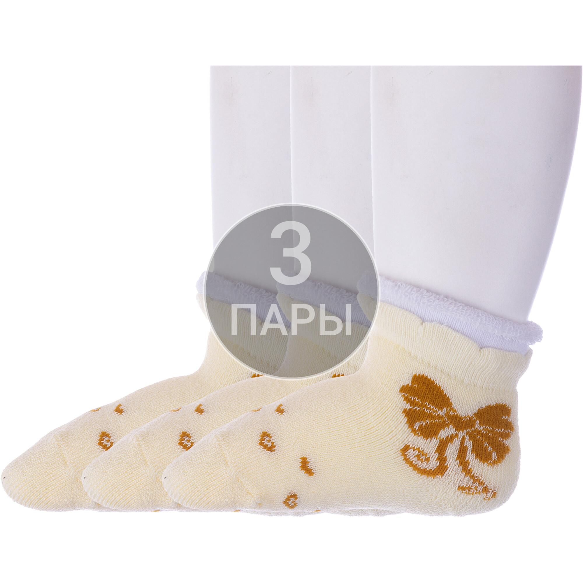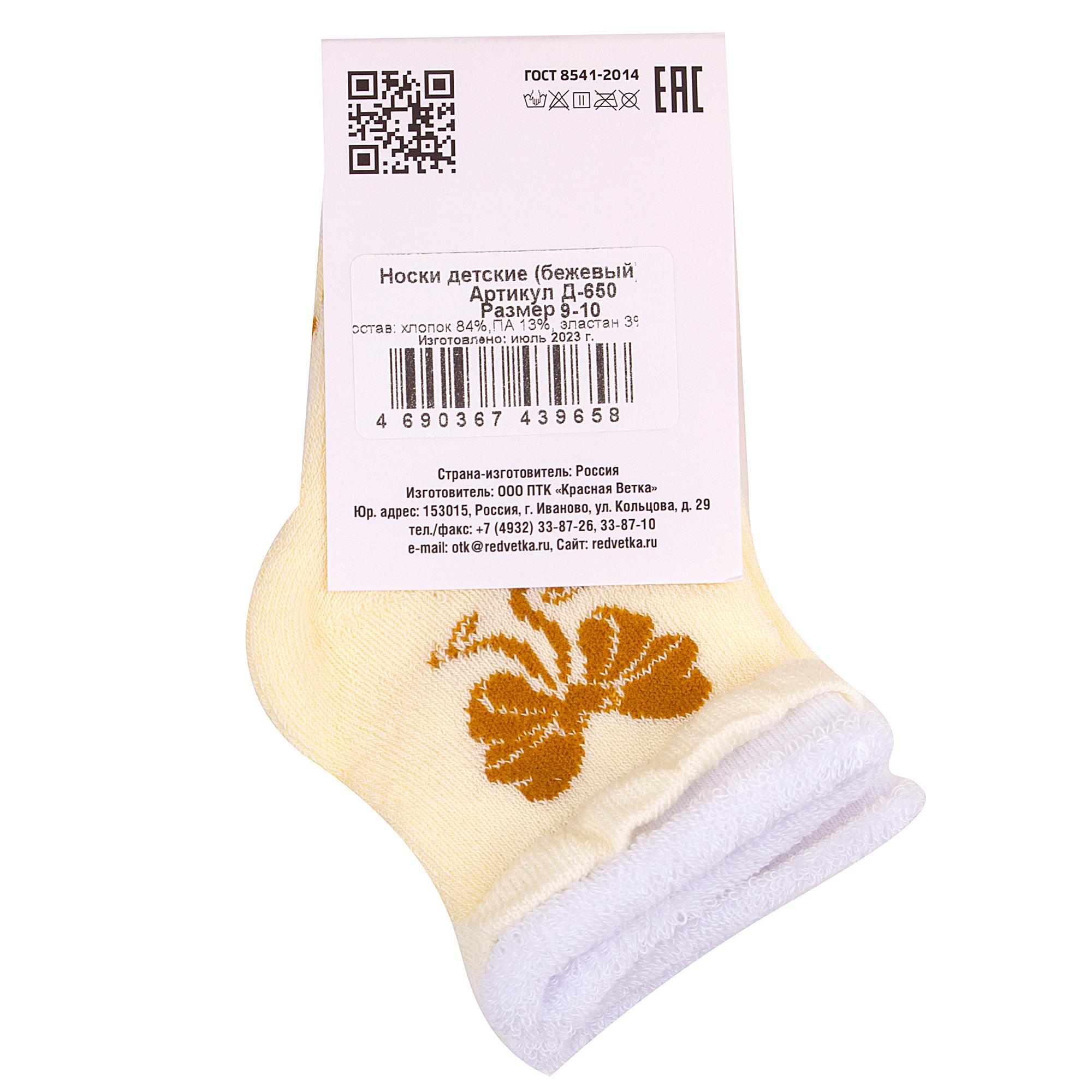 Комплект детских носков из 3 пар, межсезонные или зимние, укороченные, цвет бежевый, теплые, состав: 84% хлопок, 13% полиамид, 3% эластан, арт. 3-Д-650. Производитель «КРАСНАЯ ВЕТКА» Россия под брендом «Красная ветка».