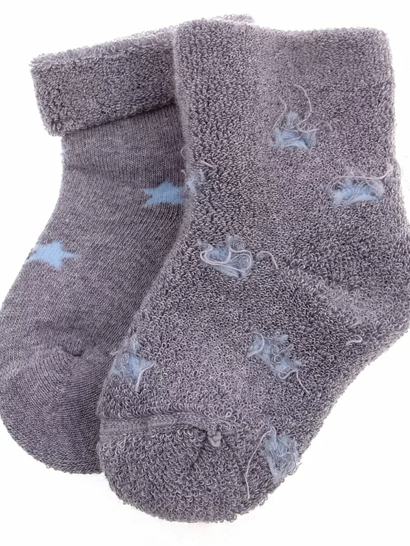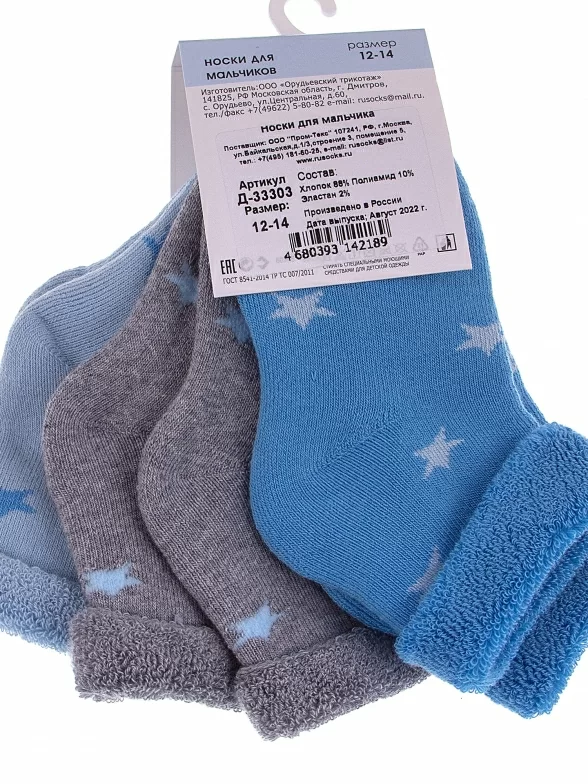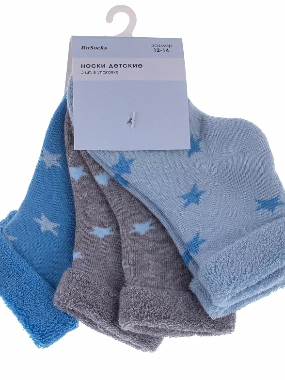 Комплект носков из 3 пар, межсезонные или зимние, укороченные, теплые, повседневные, с отворотом, махровые, возможно бесшовные, принт (рисунок): звезды / небо, с узором, состав: 88% хлопок, 10% полиамид, 2% эластан, арт. Д-33303. Производитель «ООО Орудьевский трикотаж, Россия» под брендом «Rusocks (орудьевский трикотаж)».