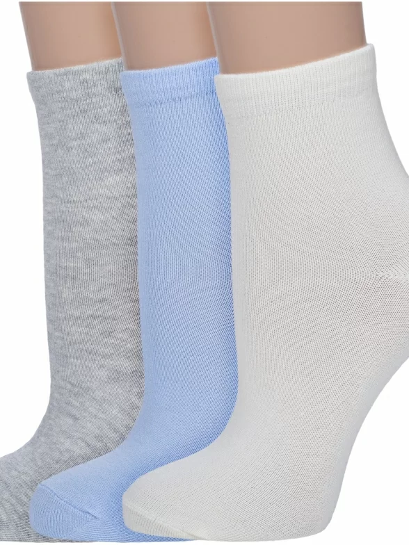 В комплект входят 3 пары носков арт. ВК41000 000: по 1 паре светло-серого меланжевого, голубого и бежевого цветов. Поставляются с индивидуальными фабричными этикетками в обычном или курьер-пакете.
