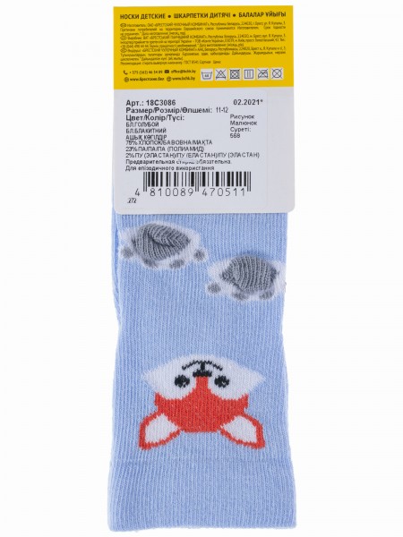 В комплект входят 3 одинаковые пары носков голубого цвета арт. СК41800, поставляются с индивидуальными фабричными этикетками в обычном или курьер-пакете.