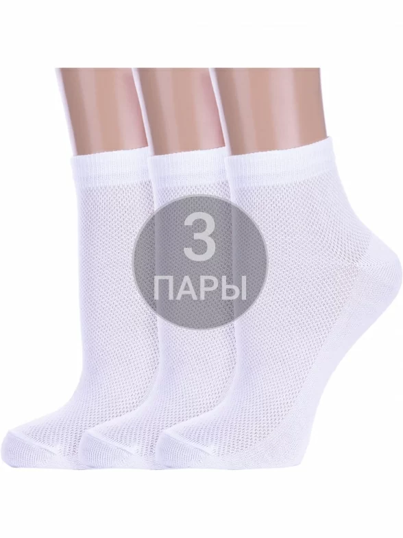 Комплект детских носков из 3 пар, летние, укороченные, цвет белый, в сеточку, классические, возможно бесшовные, принт (рисунок): однотонный, без рисунков/узоров, состав: 80% хлопок, 18% полиамид, 2% эластан, арт. 3-Д82. Производитель «ООО Альтаир, г. Орск, Оренбургская обл, Россия» под брендом «Альтаир».