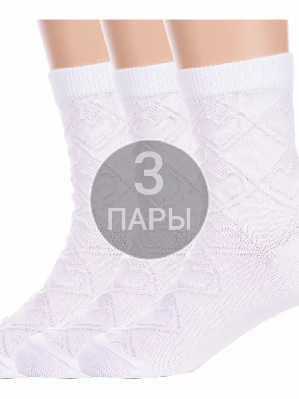 Комплект детских носков из 3 пар, летние, укороченные, цвет белый, ажурные, шов обычный (не бесшовные), принт (рисунок): сердечки / поцелуи / любовь, клетка, аргайл, с узором, однотонный, состав: 80% хлопок, 18% полиамид, 2% эластан, арт. 3-С35. Производитель «ООО Альтаир, г. Орск, Оренбургская обл, Россия» под брендом «Альтаир».