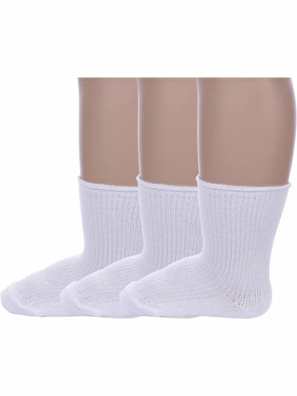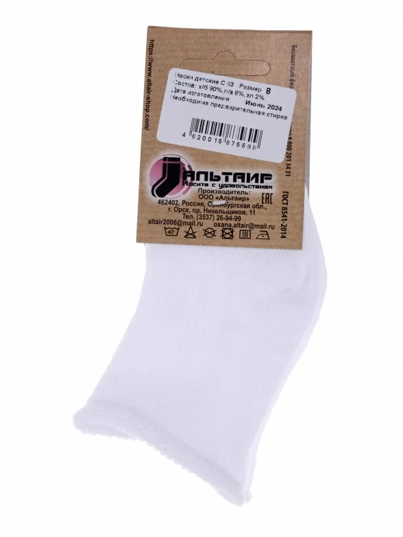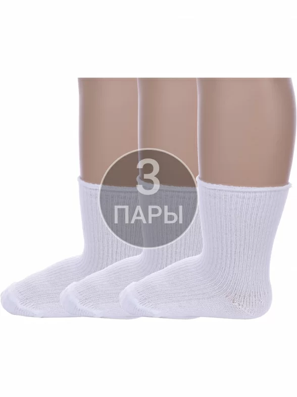 Комплект детских носков из 3 пар, круглогодичные, укороченные, цвет белый, медицинские, классические, шов обычный (не бесшовные), принт (рисунок): с узором, в рубчик, однотонный, состав: 90% хлопок, 8% полиамид, 2% эластан, арт. 3-С63. Производитель «ООО Альтаир, г. Орск, Оренбургская обл, Россия» под брендом «Альтаир».
