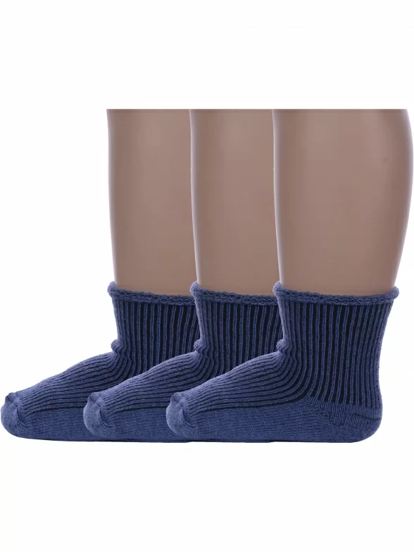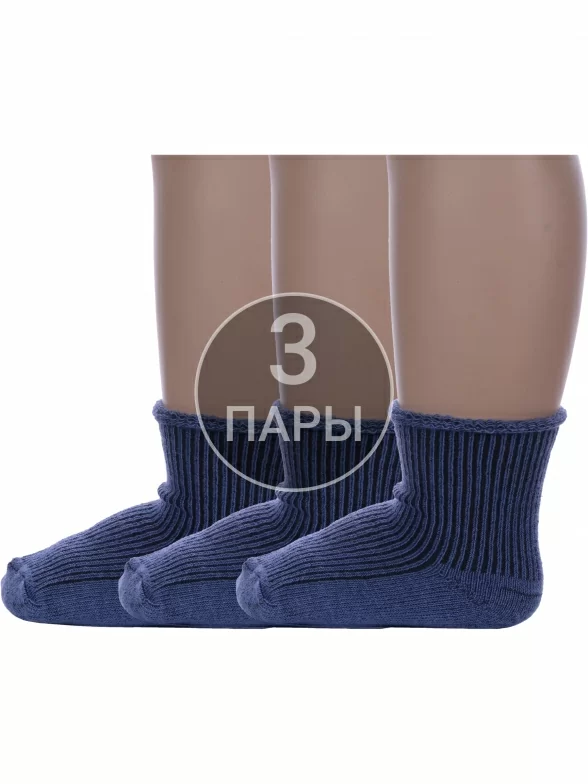 Комплект детских носков из 3 пар, круглогодичные, укороченные, цвет джинсовый, классические, медицинские, шов обычный (не бесшовные), принт (рисунок): с узором, в рубчик, однотонный, состав: 90% хлопок, 8% полиамид, 2% эластан, арт. 3-С63. Производитель «ООО Альтаир, г. Орск, Оренбургская обл, Россия» под брендом «Альтаир».