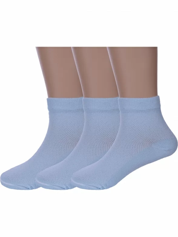 Комплект детских носков из 3 пар, летние, укороченные, цвет голубой, в сеточку, шов обычный (не бесшовные), принт (рисунок): однотонный, с узором, состав: 80% хлопок, 18% полиамид, 2% эластан, арт. 3-Д82. Производитель «ООО Альтаир, г. Орск, Оренбургская обл, Россия» под брендом «Альтаир».