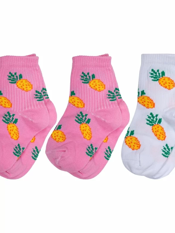 Комплект детских носков бренда Альтаир: с фруктовым принтом в виде ананасов. Подойдут девочкам для прогулок, школы или детского сада в демисезонный период.