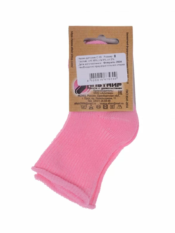 Комплект детских носков из 3 пар, круглогодичные, укороченные, цвет розовый, классические, медицинские, шов обычный (не бесшовные), принт (рисунок): однотонный, с узором, в рубчик, состав: 90% хлопок, 8% полиамид, 2% эластан, арт. 3-С63. Производитель «ООО Альтаир, г. Орск, Оренбургская обл, Россия» под брендом «Альтаир».