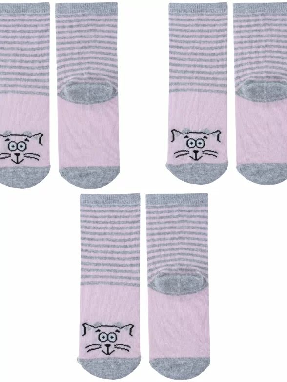 Комплект из 3 пар детских носков Альтаир, 3-С183, РОЗОВЫЕ со светло-серым