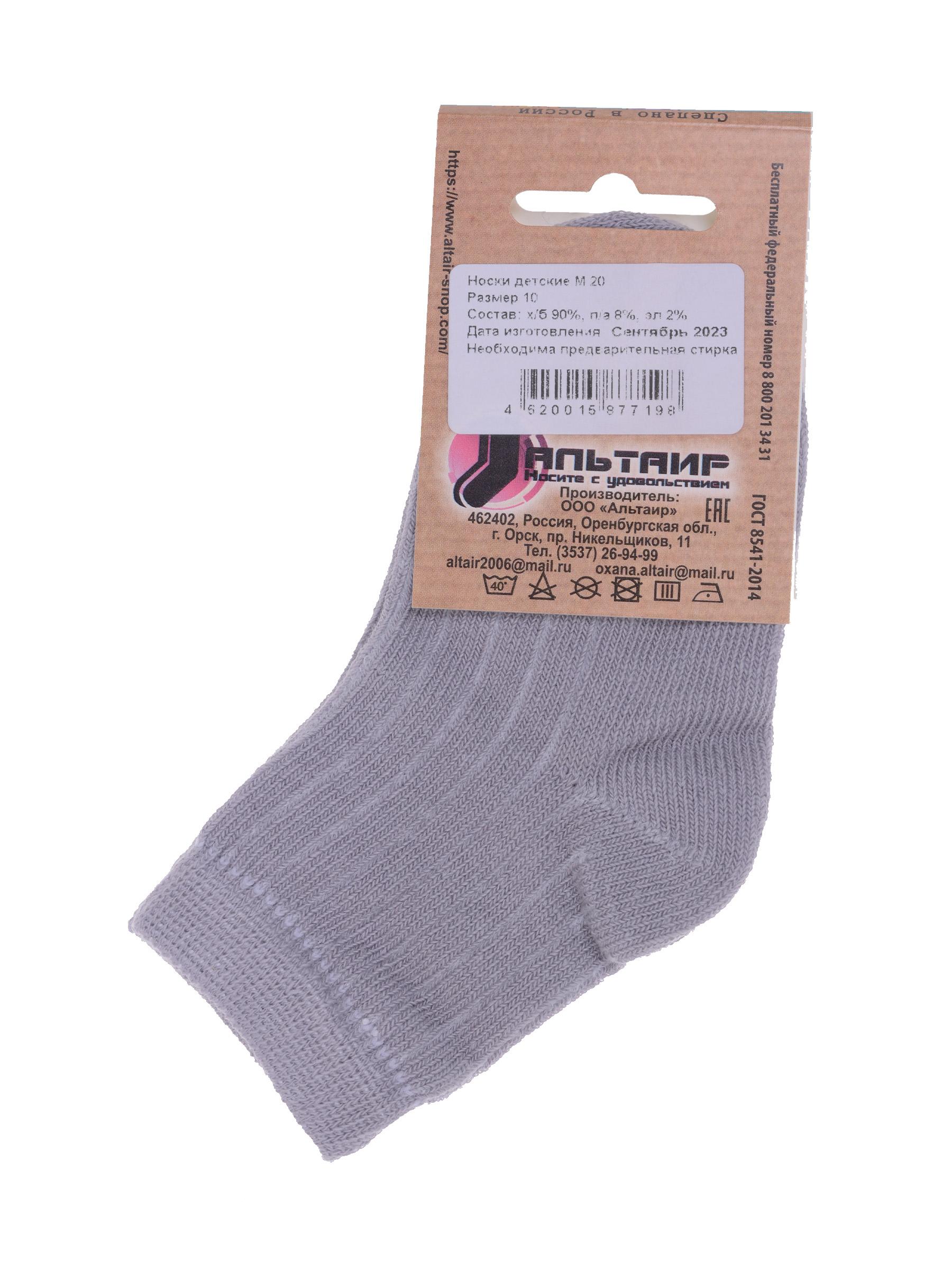 Комплект детских носков из 3 пар, круглогодичные, укороченные, цвет серый, классические, шов обычный (не бесшовные), принт (рисунок): в рубчик, с узором, однотонный, состав: 90% хлопок, 8% полиамид, 2% эластан, арт. 3-М20. Производитель «ООО Альтаир, г. Орск, Оренбургская обл, Россия» под брендом «Альтаир».