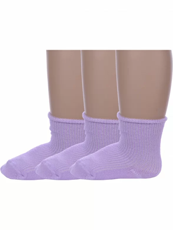 Комплект детских носков из 3 пар, круглогодичные, укороченные, цвет сиреневый, классические, медицинские, шов обычный (не бесшовные), принт (рисунок): в рубчик, однотонный, с узором, состав: 90% хлопок, 8% полиамид, 2% эластан, арт. 3-С63. Производитель «ООО Альтаир, г. Орск, Оренбургская обл, Россия» под брендом «Альтаир».