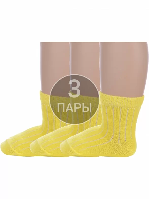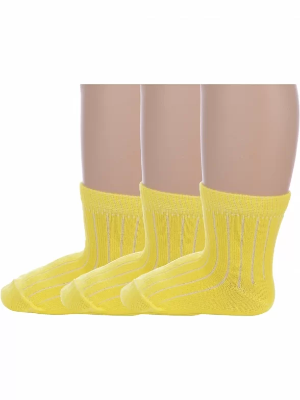 Комплект детских носков из 3 пар, круглогодичные, укороченные, цвет желтый, классические, шов обычный (не бесшовные), принт (рисунок): с узором, однотонный, в рубчик, состав: 90% хлопок, 8% полиамид, 2% эластан, арт. 3-М20. Производитель «ООО Альтаир, г. Орск, Оренбургская обл, Россия» под брендом «Альтаир».
