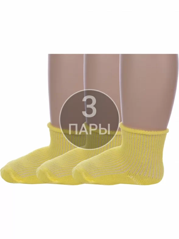Комплект детских носков из 3 пар, круглогодичные, укороченные, цвет желтый, медицинские, классические, шов обычный (не бесшовные), принт (рисунок): в рубчик, однотонный, с узором, состав: 90% хлопок, 8% полиамид, 2% эластан, арт. 3-С63. Производитель «ООО Альтаир, г. Орск, Оренбургская обл, Россия» под брендом «Альтаир».
