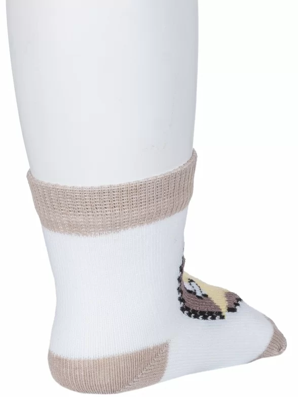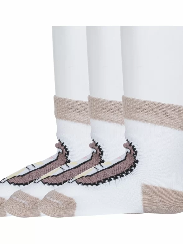 Комплект детских носков из 3 пар, круглогодичные, укороченные, цвет белый, прикольные, состав: 72% хлопок, 25% полиэстер, 3% эластан, фабричный артикул 3-8С906. Производитель «АО Борисоглебский трикотаж, Воронежская обл, Россия» под брендом «Борисоглебский трикотаж».
