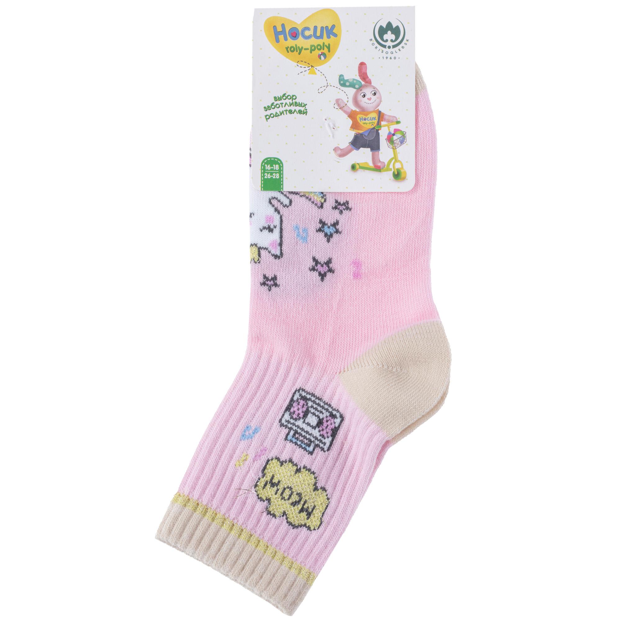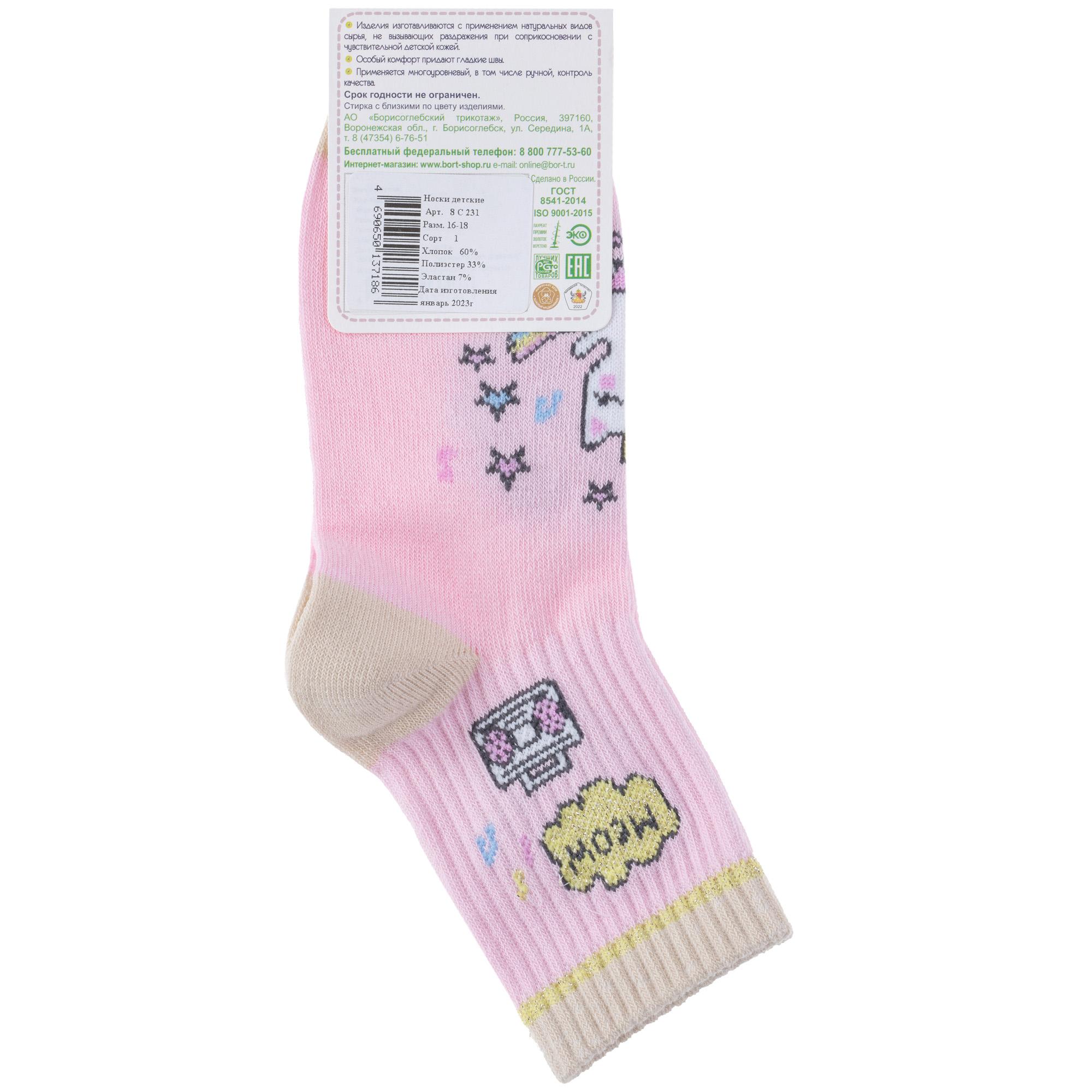 Комплект детских носков из 3 пар, круглогодичные, укороченные, цвет розовый, прикольные, состав: 60% хлопок, 33% полиамид, 7% эластан, фабричный артикул 3-8С231. Производитель «АО Борисоглебский трикотаж, Воронежская обл, Россия» под брендом «Борисоглебский трикотаж».