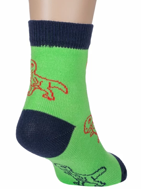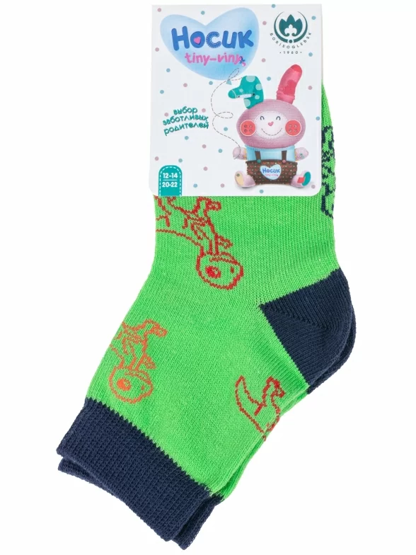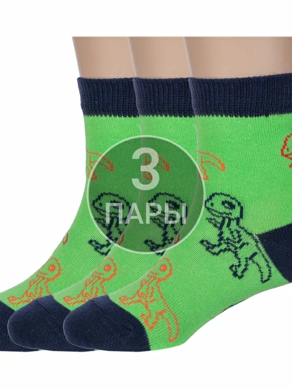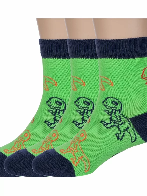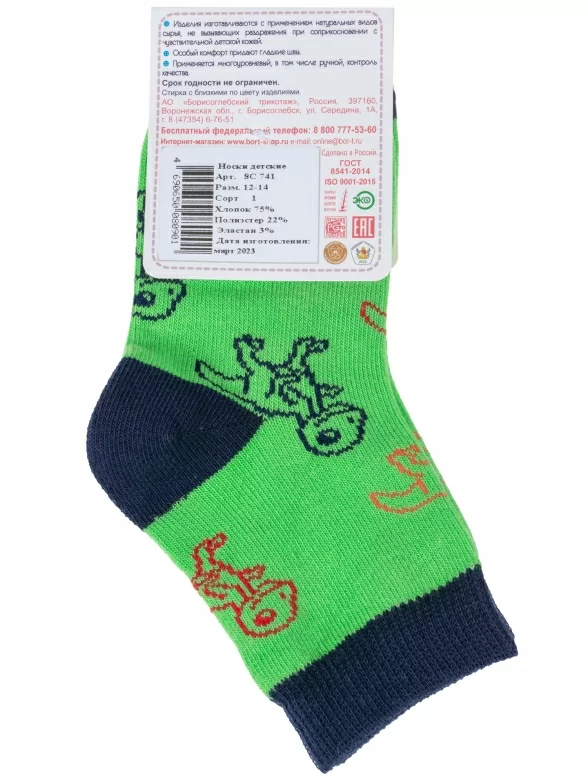 Комплект детских носков из 3 пар, круглогодичные, укороченные, цвет салатовый, прикольные, состав: 75% хлопок, 22% полиэстер, 3% эластан, фабричный артикул 3-8С741. Производитель «АО Борисоглебский трикотаж, Воронежская обл, Россия» под брендом «Борисоглебский трикотаж».