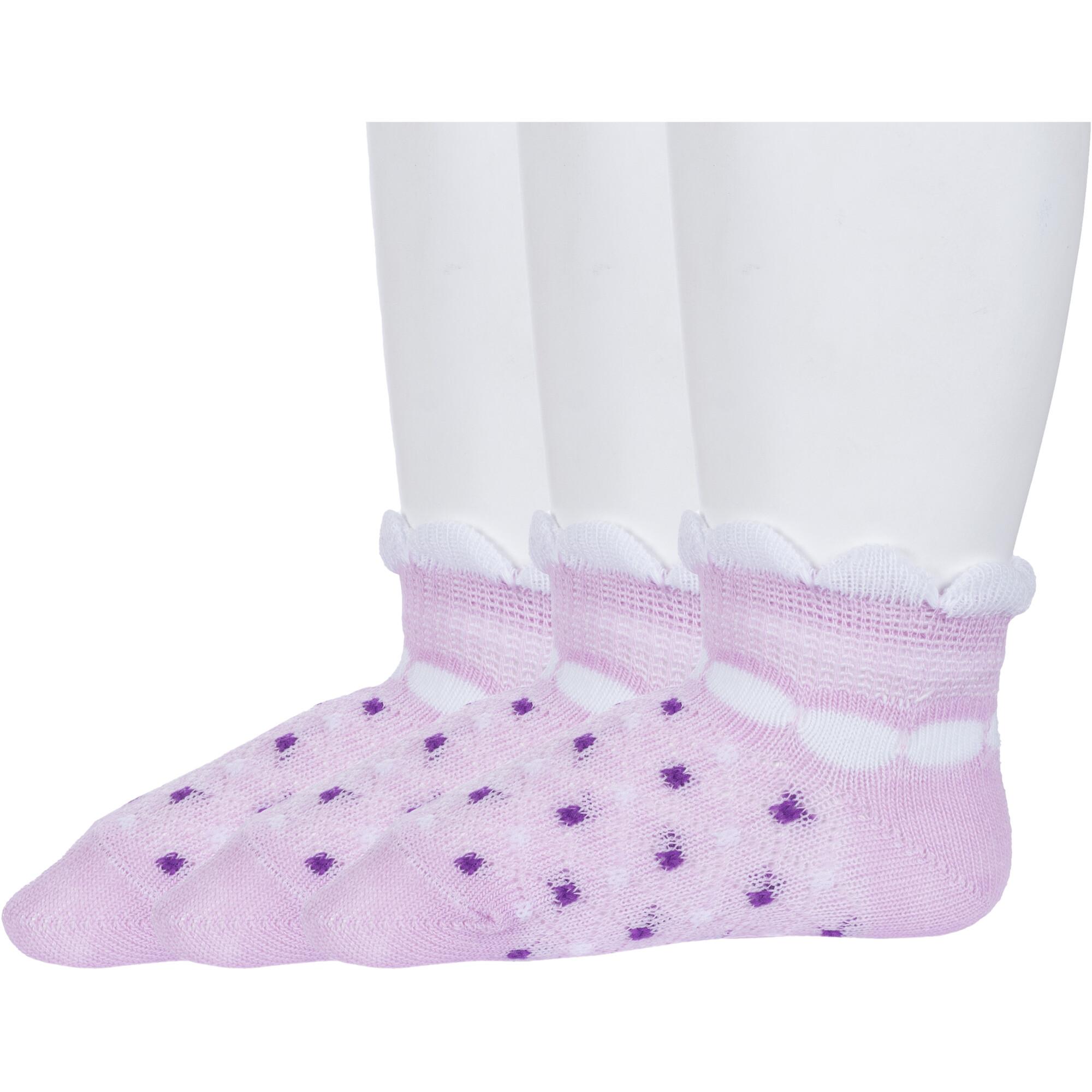 Комплект детских носков из 3 пар, летние, короткие, цвет сиреневый, ажурные, состав: 72% хлопок, 25% полиэстер, 3% эластан, фабричный артикул 3-8СД3001. Производитель «АО Борисоглебский трикотаж, Воронежская обл, Россия» под брендом «Борисоглебский трикотаж».