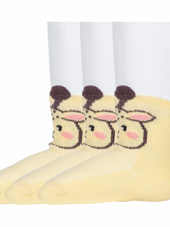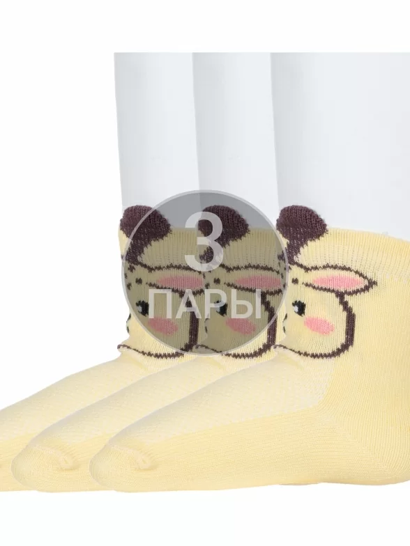 Комплект детских носков из 3 пар, летние, укороченные, цвет желтый, в сеточку, состав: 79% хлопок, 18% полиамид, 3% эластан, фабричный артикул 3-8С80. Производитель «АО Борисоглебский трикотаж, Воронежская обл, Россия» под брендом «Борисоглебский трикотаж».