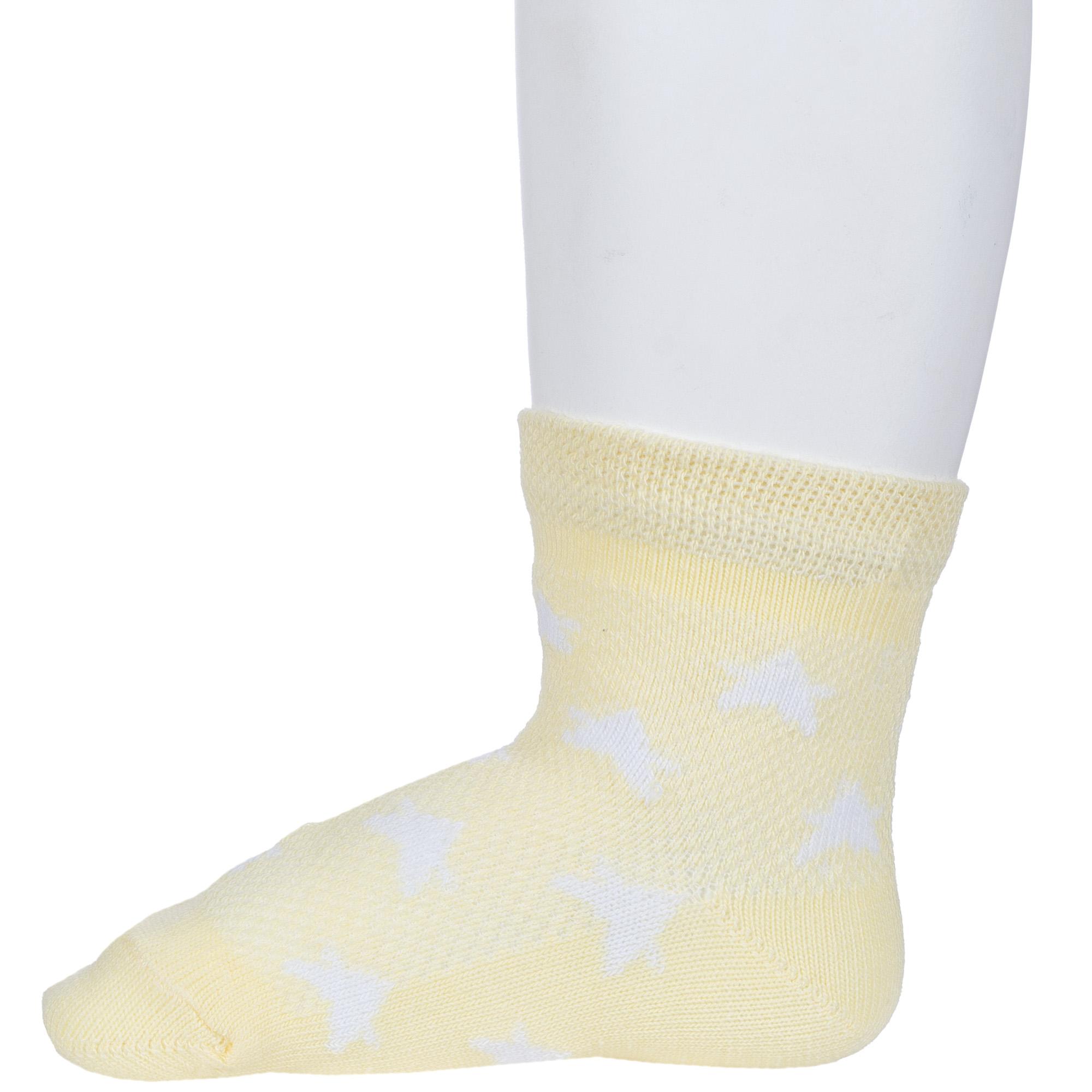 Комплект детских носков из 3 пар, летние, укороченные, цвет желтый, прикольные, состав: 87% хлопок, 10% полиамид, 3% эластан, фабричный артикул 3-8С957. Производитель «АО Борисоглебский трикотаж, Воронежская обл, Россия» под брендом «Борисоглебский трикотаж».