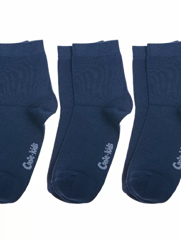 Комплект детских носков из 3 пар, круглогодичные, укороченные, цвет рис. 000, темно-синие, классические, шов кеттельный (бесшовная технология), принт (рисунок): однотонный, без рисунков/узоров, состав: 72% хлопок, 25.5% полиамид, 2.5% эластан, арт. 3-5С-11СП. Производитель «Conte, Беларусь» под брендом «Conte».