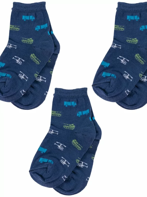 Комплект детских носков бренда Альтаир с принтом в виде военной техники. Подойдут мальчикам для прогулок, школы или детского сада в демисезонный период.