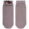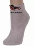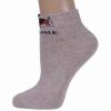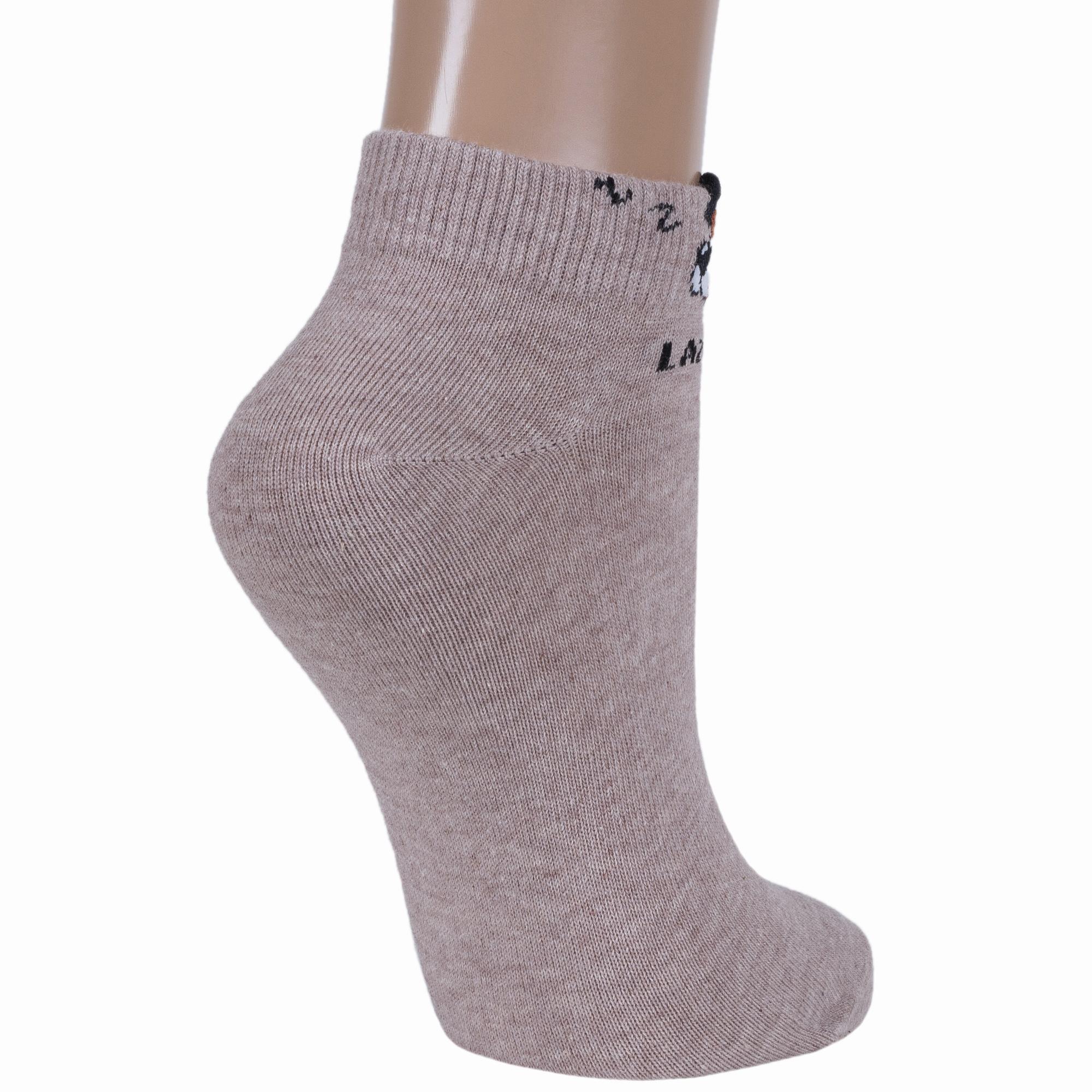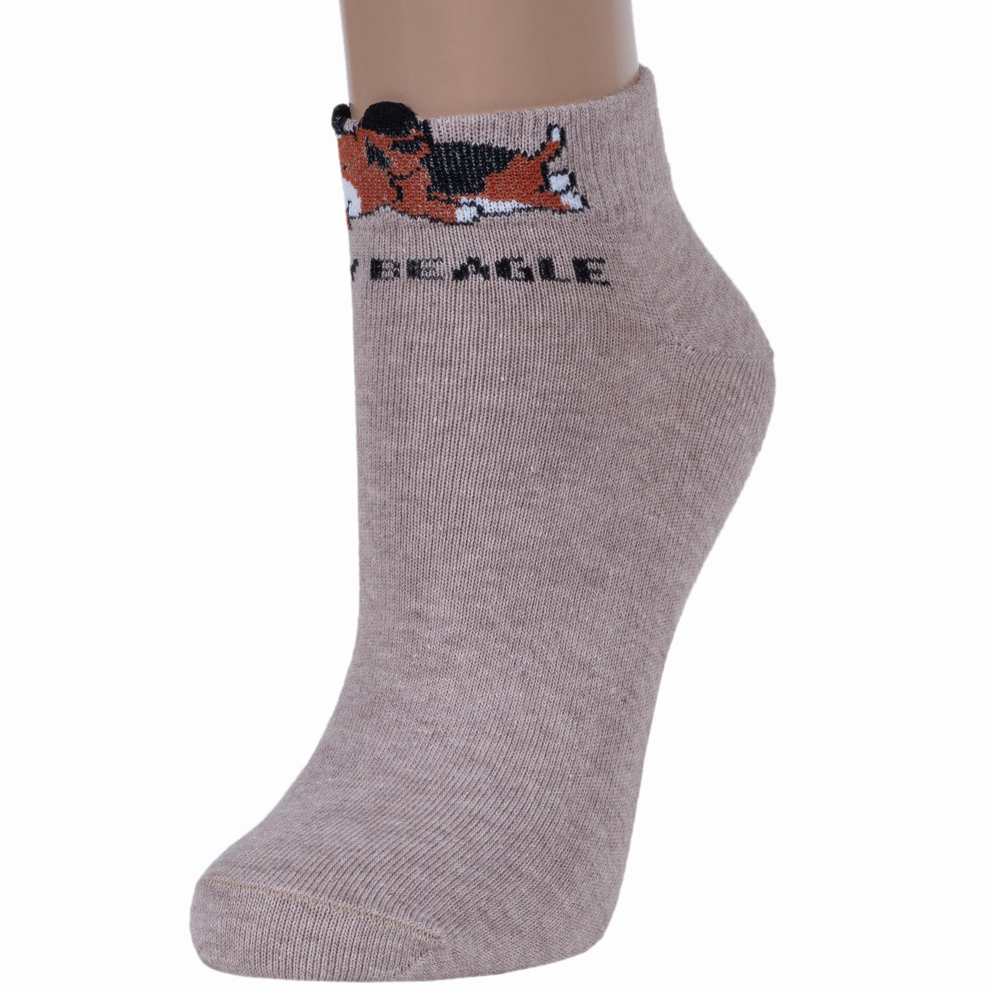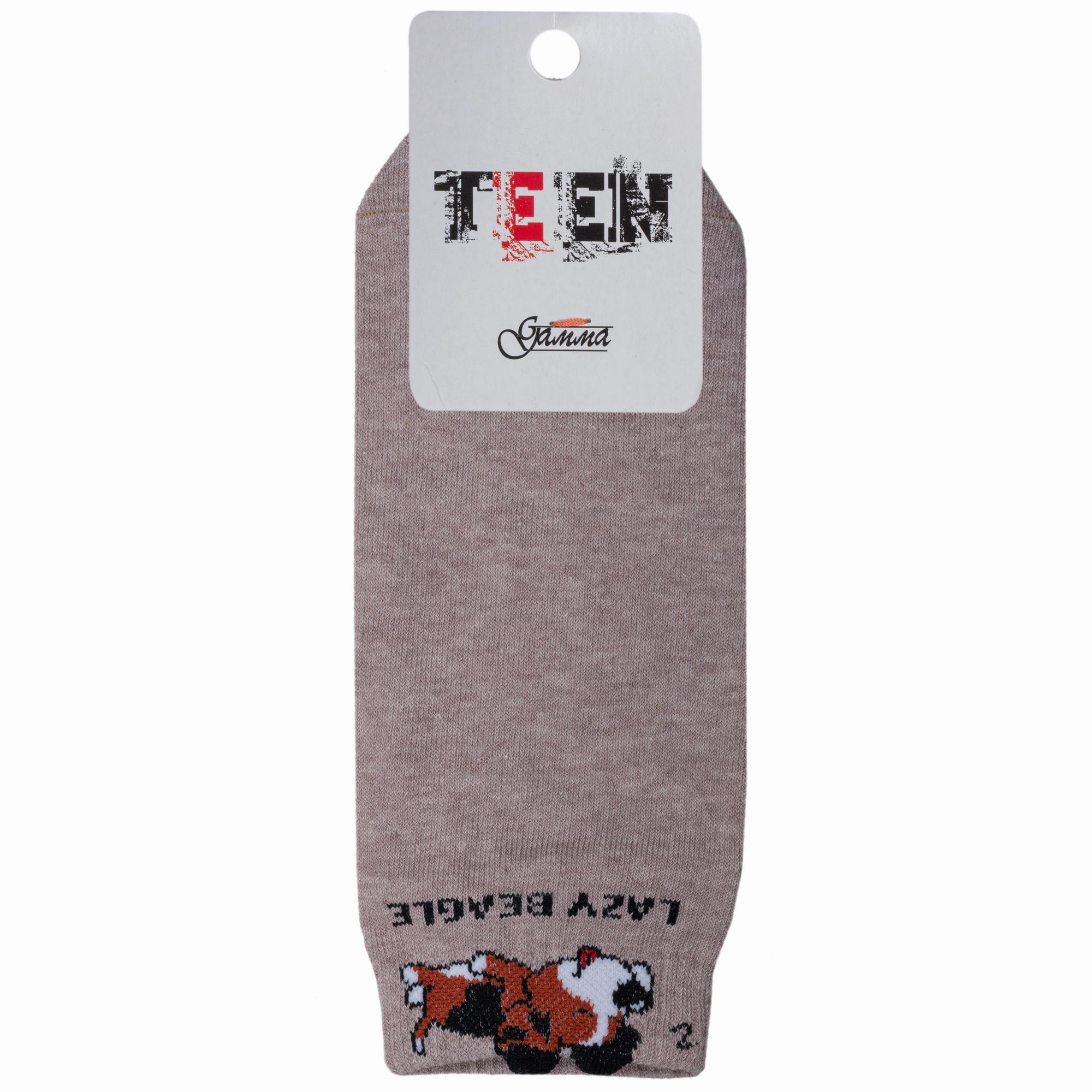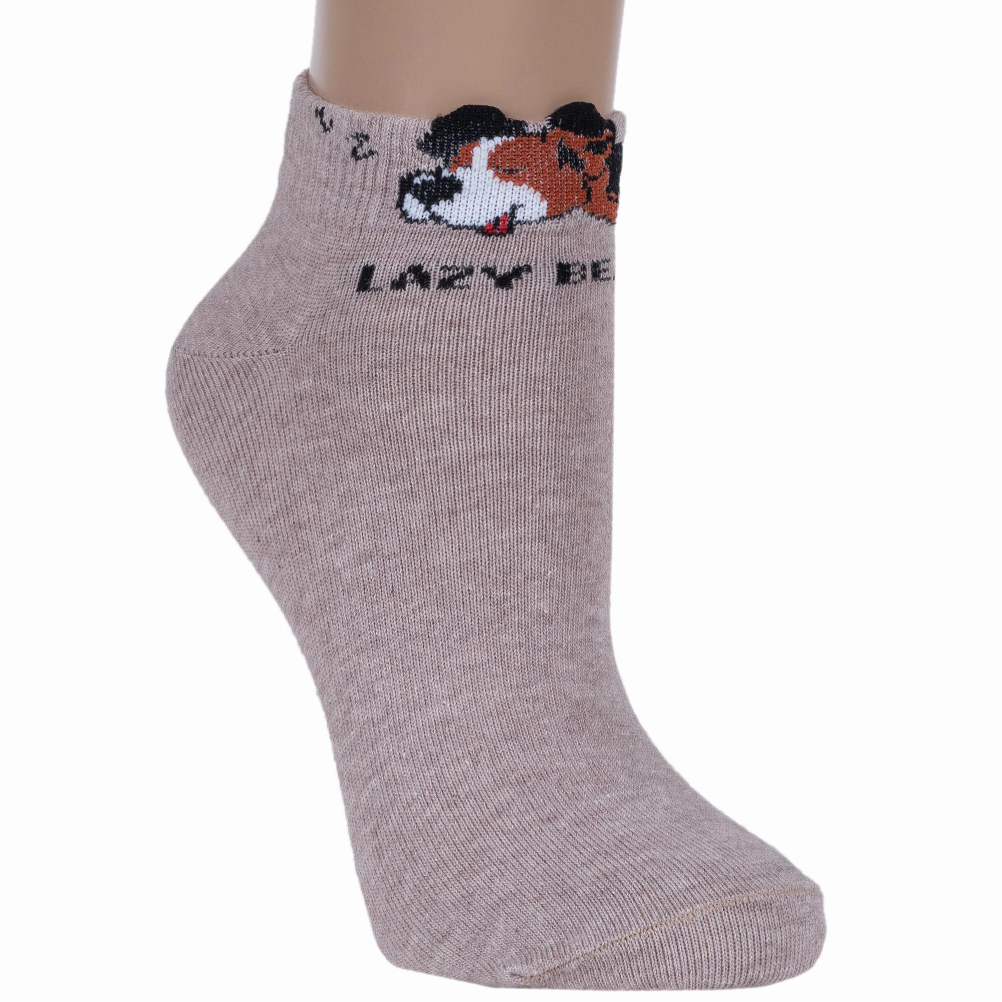 Короткая модель цвета бежевый меланж с двойным бортом (манжетом резинки); украшена изображением собачки и надписью на английском языке "Ленивый бигль". Изготовлены в г. Орле из хлопка с добавлением полиамида и эластана для износостойкости изделия и комфортной посадки.