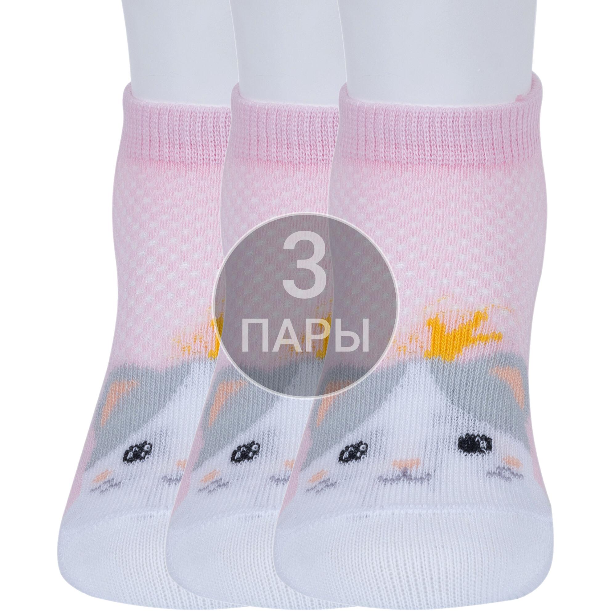 Комплект детских носков из 3 пар, летние, короткие, цвет рис. Кошка, светло-розовый, в сеточку, повседневные, шов обычный (не бесшовные), принт (рисунок): животные, с узором, состав: 82% хлопок, 16% полиамид, 2% эластан, арт. 3-С1649. Производитель «ГАММА» Россия под брендом «Гамма».