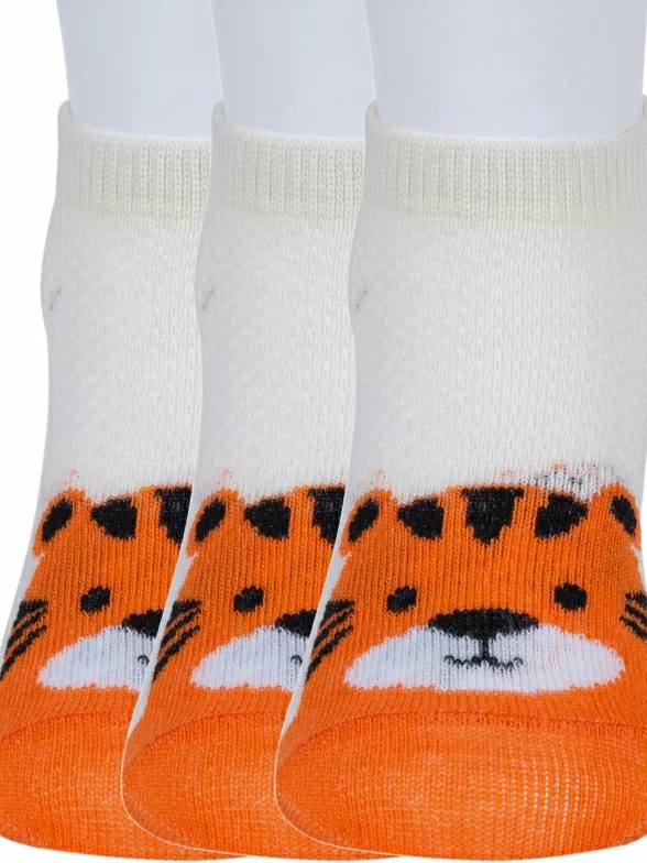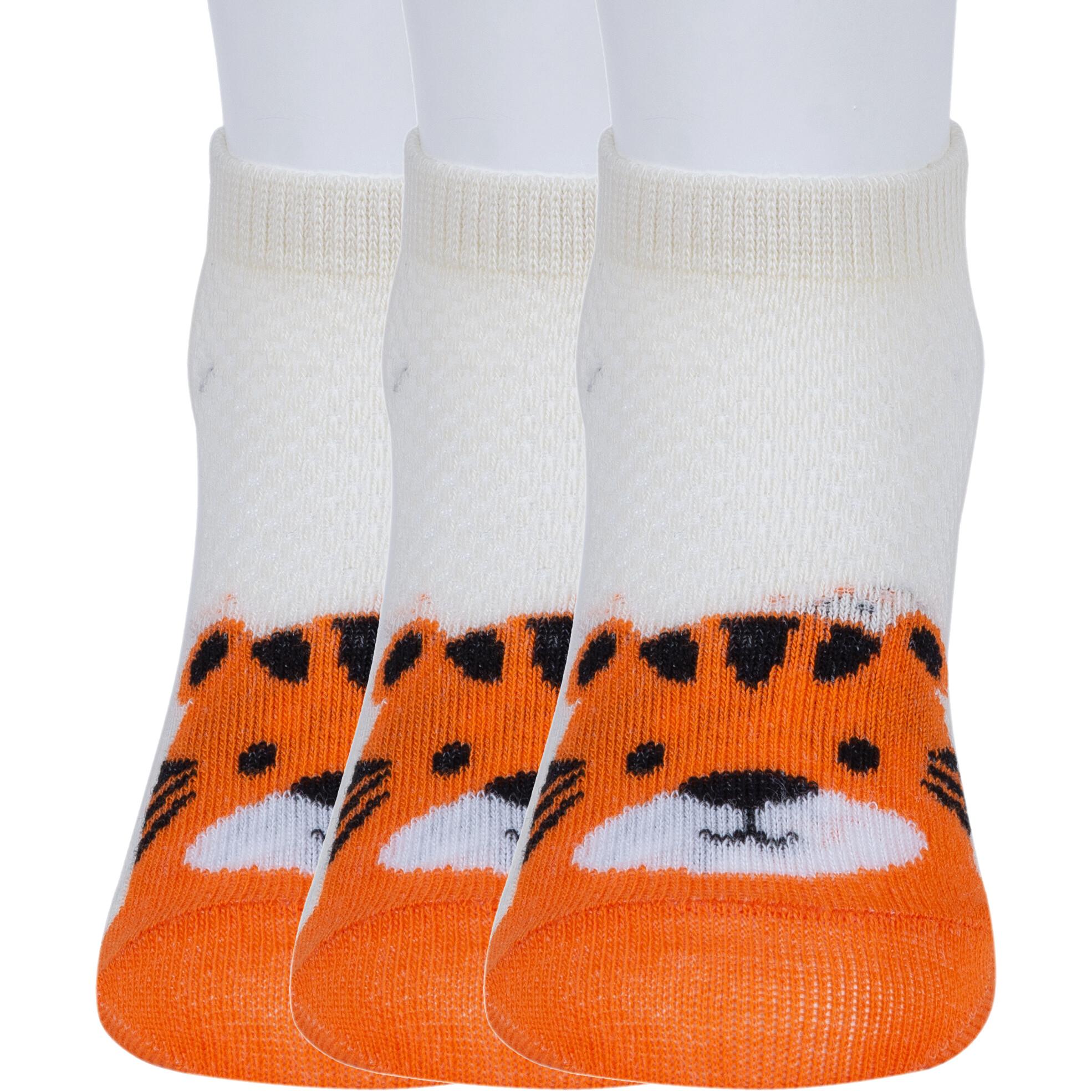 Комплект детских носков из 3 пар, летние, короткие, цвет рис. Тигренок, кремовый, в сеточку, повседневные, шов обычный (не бесшовные), принт (рисунок): животные, с узором, состав: 82% хлопок, 16% полиамид, 2% эластан, арт. 3-С1649. Производитель «ГАММА» Россия под брендом «Гамма».