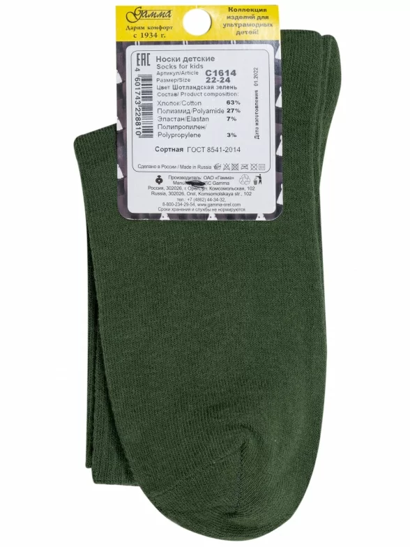 Комплект из 3 пар детских носков Гамма, 3-С1614, ШОТЛАНДСКАЯ ЗЕЛЕНЬ