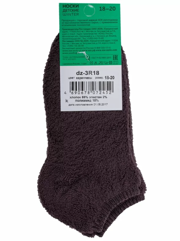 Комплект из 3 пар детских махровых носков ХОХ, 3-DZ-3R18, КОРИЧНЕВЫЕ