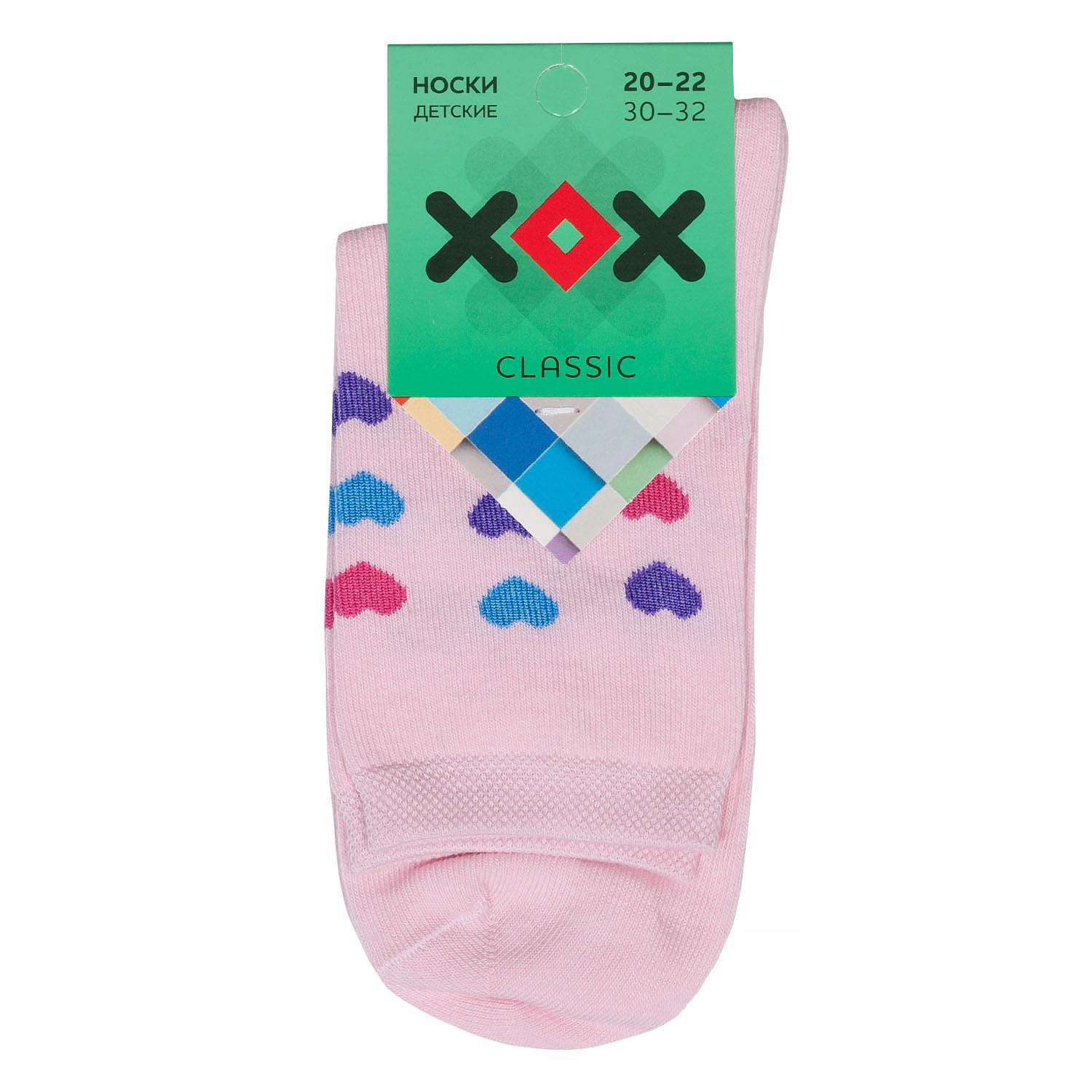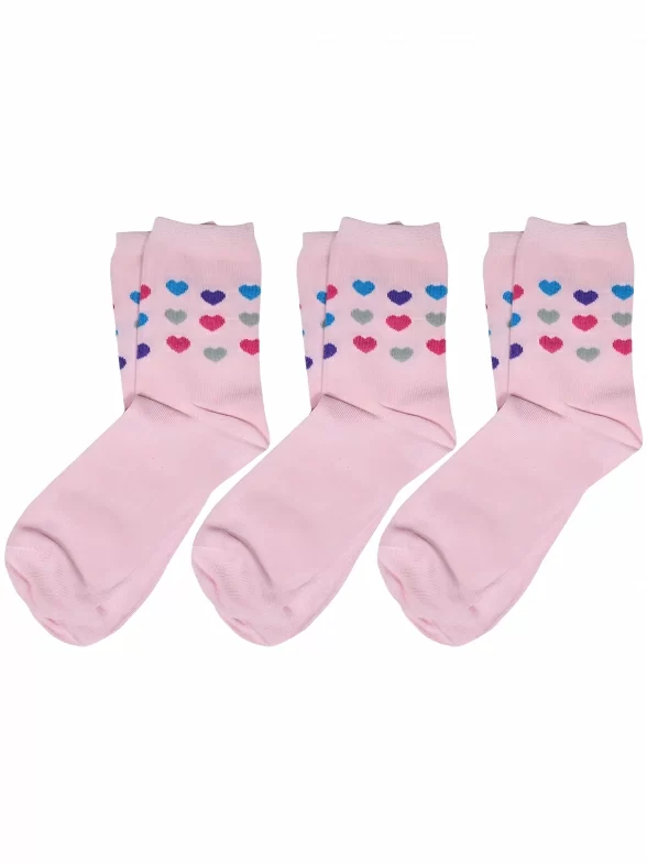 Комплект детских носков из 3 пар, круглогодичные, средней длины, цвет розовый, повседневные, шов обычный (не бесшовные), принт (рисунок): сердечки / поцелуи / любовь, с узором, состав: 88% хлопок, 10% полиамид, 2% лайкра, арт. 3-D-3R2. Производитель «ХОХ» Россия под брендом «Хох».